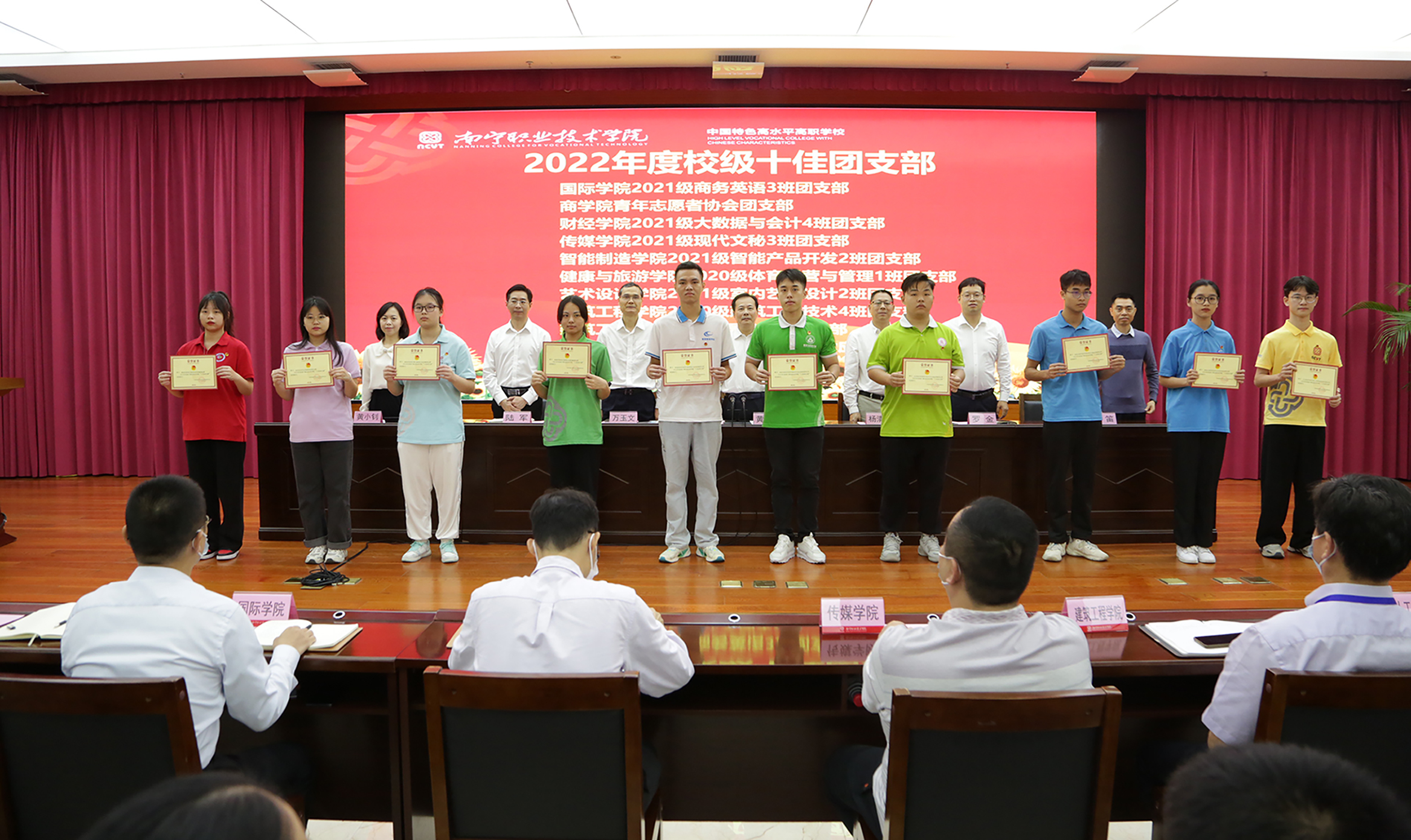 学校党委组织部、党委宣传部、学生工作部(处)、校团委相关负责人,各二级学院党委副书记、专兼职团干,获奖代表,二级学院团员青年代表参加会议。