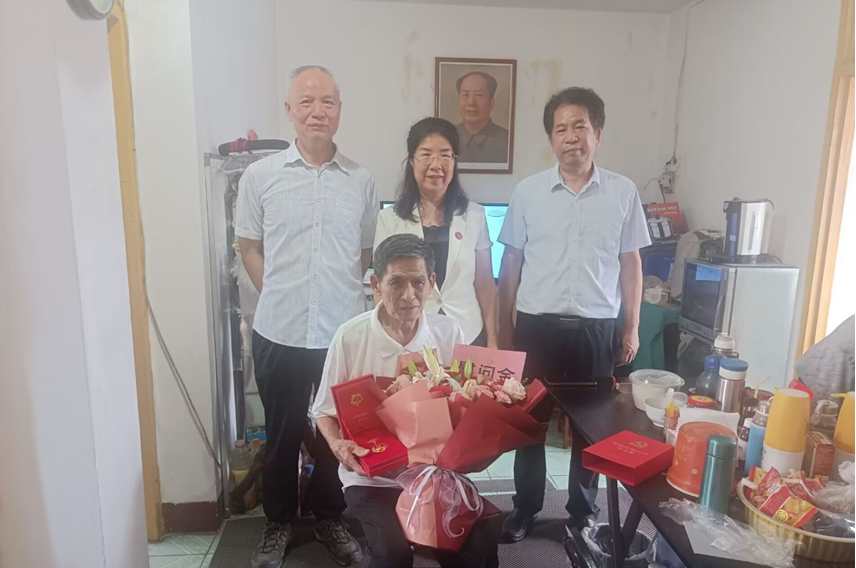 罗桂全看望老党员并颁发纪念章(陆日谊/摄)
