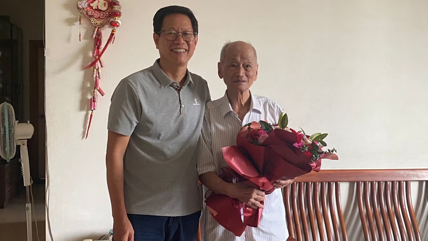 “您老最近身体怎么样?”“生活上有困难吗?”在80岁高龄老党员杨善元家中,黄明瑞关切地问道,并与他围坐在一起促膝长谈,一同忆初心、话家常、问需求。黄明瑞详细询问、了解老同志的身体健康情况和生活思想状况,向他介绍了学校近年来建设和发展情况,特别是在国家“双高”校建设和升本工作等方面取得的成绩,感谢老同志为学校建设和发展所作的贡献,嘱咐他要保重好身体,继续发挥好带头示范作用,为学校建设和发展多提宝贵意见、建议,同时要求相关职能部门要做好对老同志的关心关爱工作。