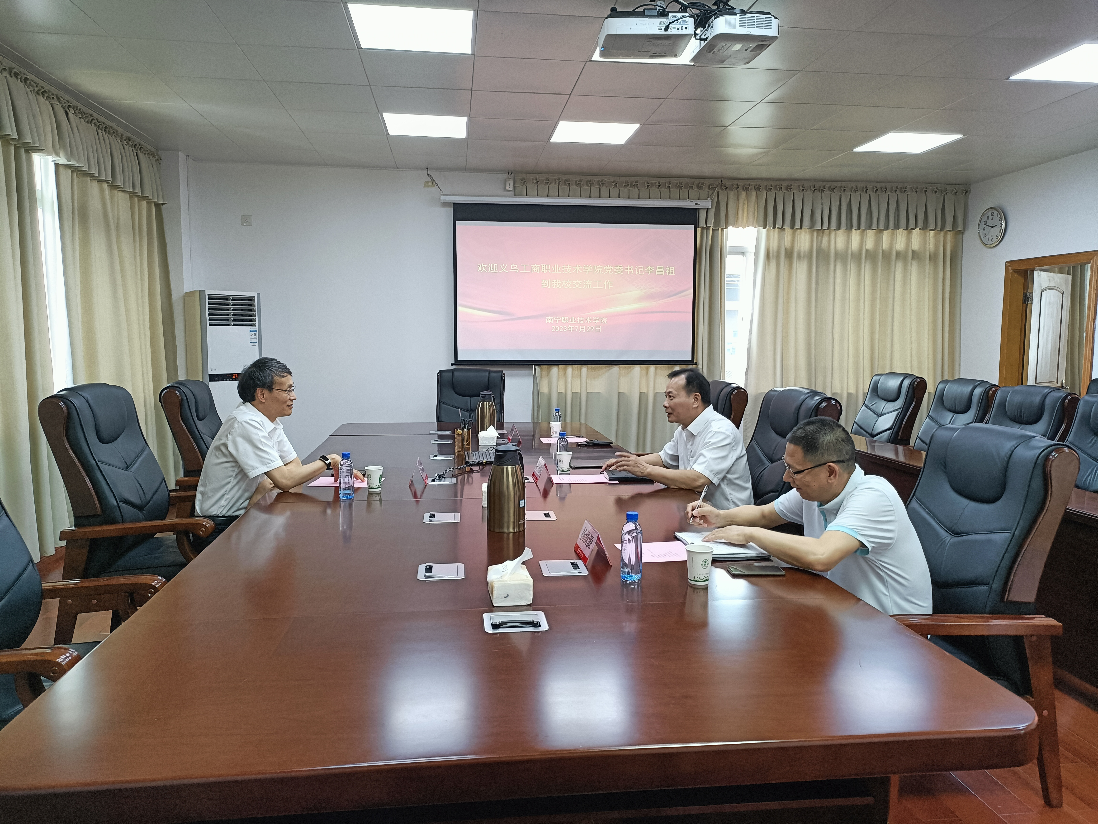 7月29日,义乌工商职业技术学院党委书记李昌祖到必赢官网考察交流。学校党委书记黄明瑞,党委副书记杨清源参加座谈交流。