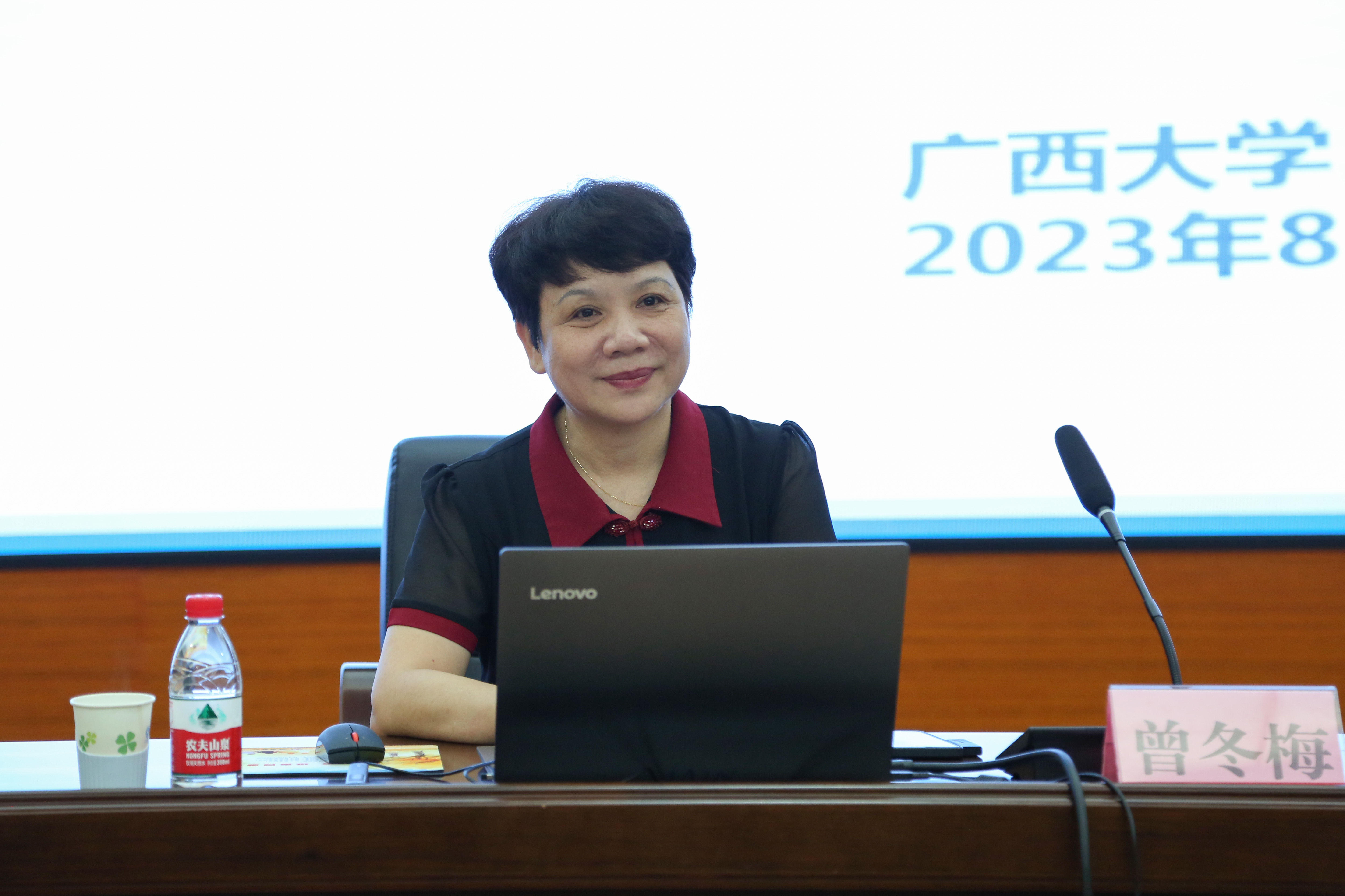 培训中,自治区人力资源和社会保障厅党组成员、副厅长乐永红,广西大学教授曾冬梅,学校党委副书记杨清源分别作《谈谈机关文稿的写作》《如何做好二级学院院长》《基于制度的执行力实践》专题辅导。