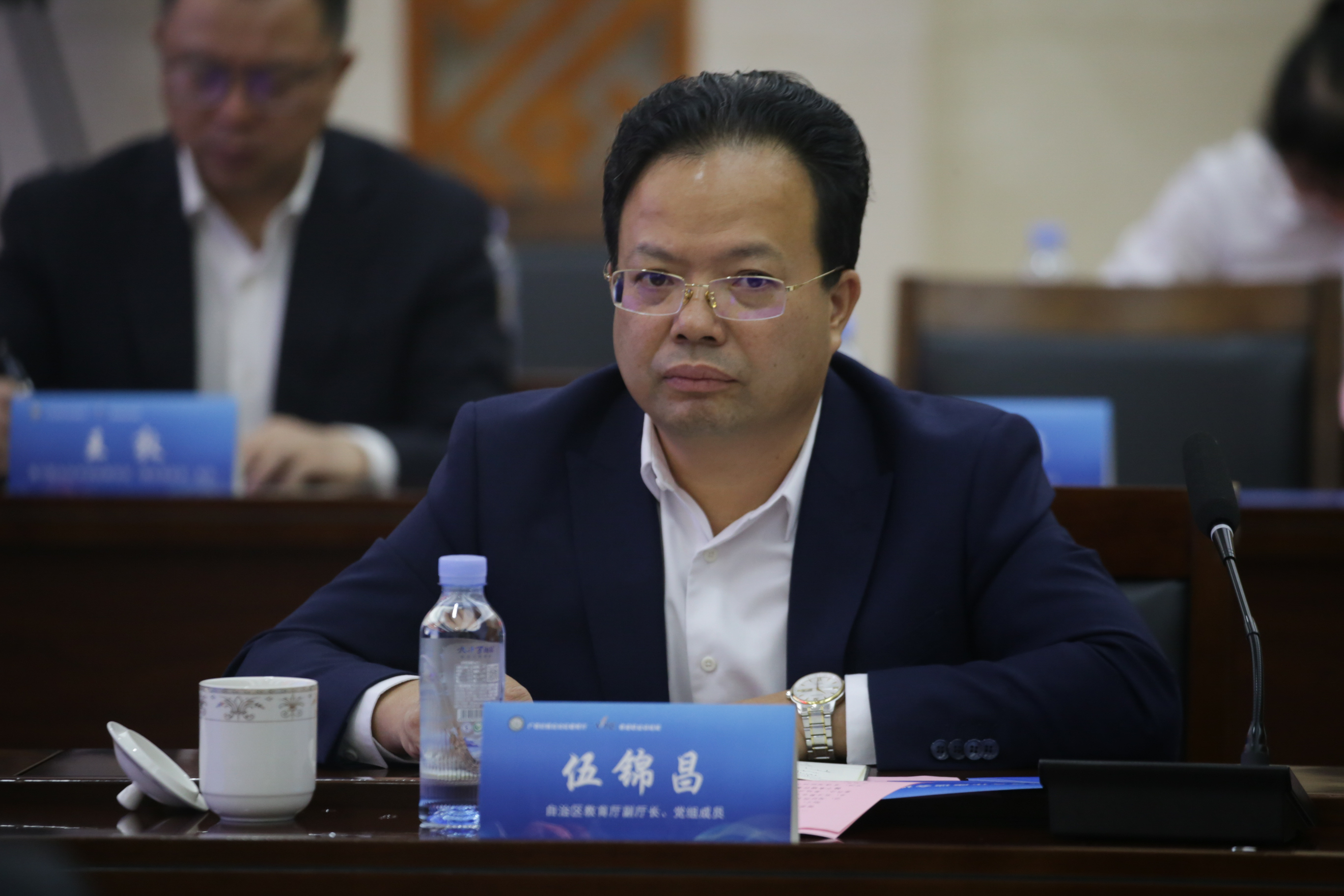 9月16日,桂港职业教育合作座谈会在必赢官网举行。广西壮族自治区党委教育工委副书记,自治区教育厅党组书记、厅长刘友谊,香港职业训练局执行干事唐智强,自治区教育厅副厅长伍锦昌,香港职业训练局高峰进修学院院长苏伟文,学校校长周旺参加座谈交流。会议由伍锦昌主持。