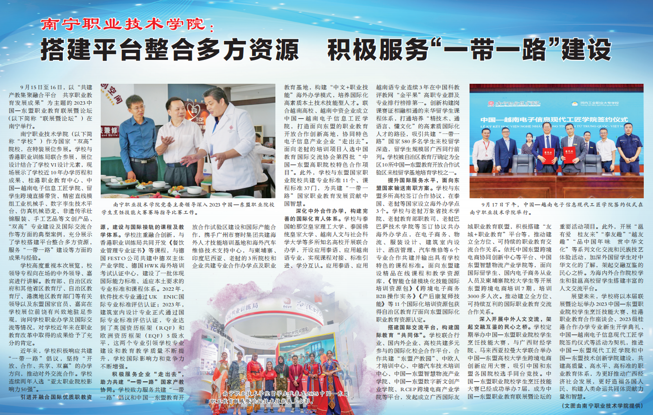 9月15日至16日,以“共建产教集聚融合平台 共享职业教育发展成果”为主题的2023中国—东盟职业教育联展暨论坛(以下简称“联展暨论坛”)在南宁举行。
