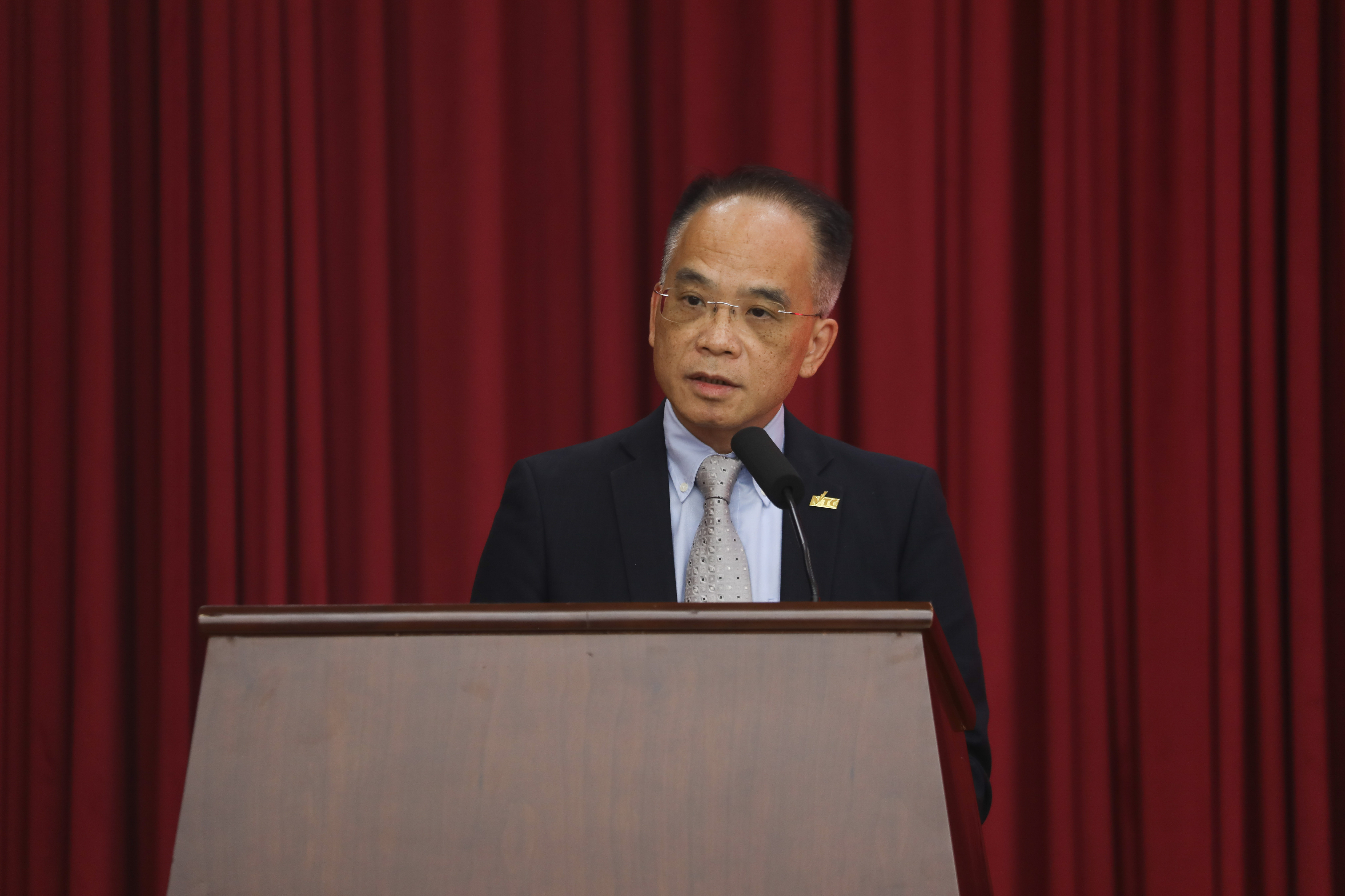 苏伟文代表香港职业训练局高峰进修学院,对86名2023级桂港合作专业新生入学表示欢迎,希望各位同学在南职院好好学习,为将来赴香港交流学习打下坚实基础。
