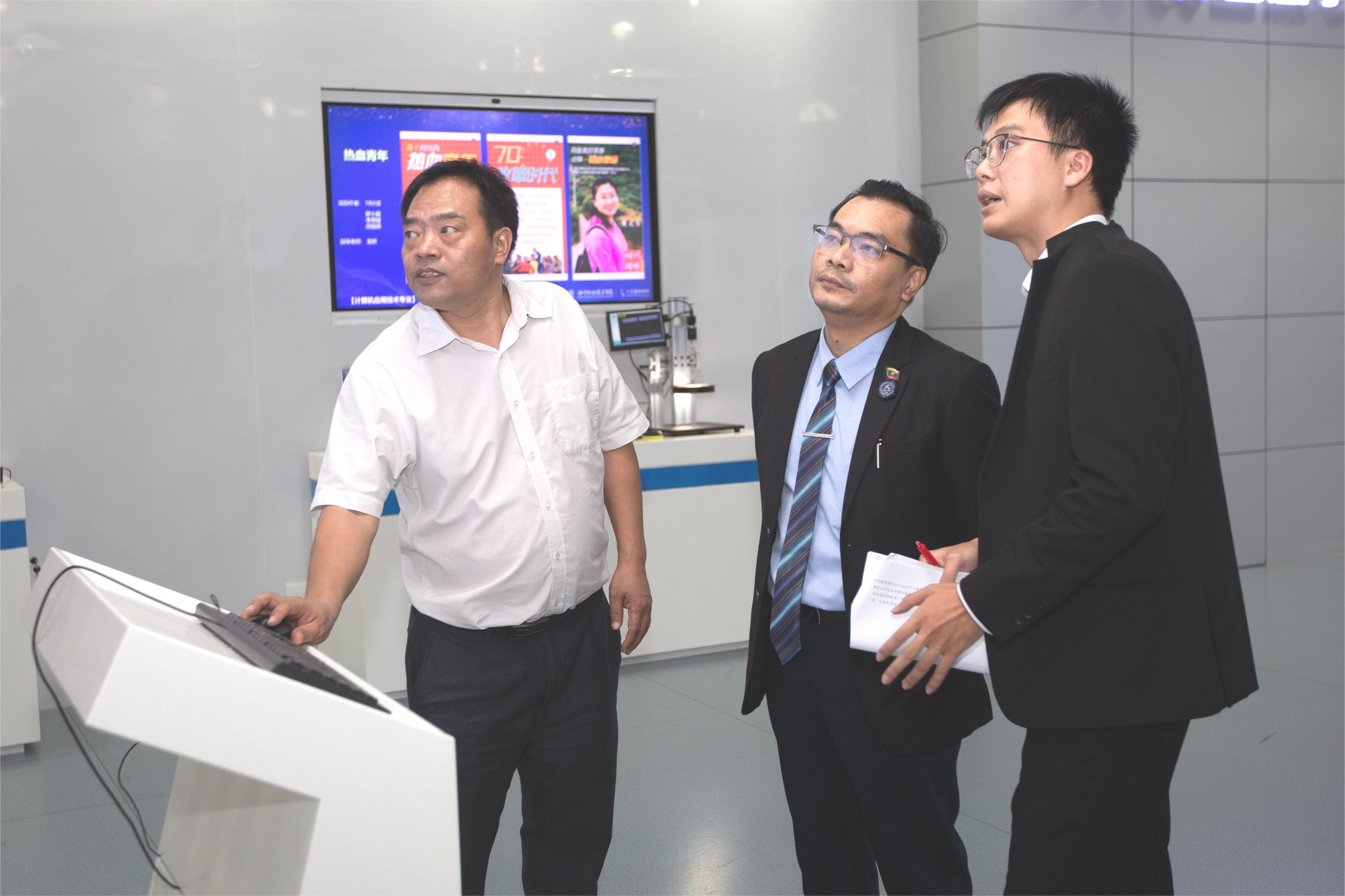 座谈会上,周旺就吴昂泽亚博士关心的问题,从学校定位及功能布局、新能源应用及专业规划设置、国际交流与合作、外国留学生人才培养模式等方面作详细介绍。周旺表示,学校希望与缅甸一道,通过开展师生文化交流、公务员及师资培训、合作办学等形式,进一步加强职业教育交流与合作。