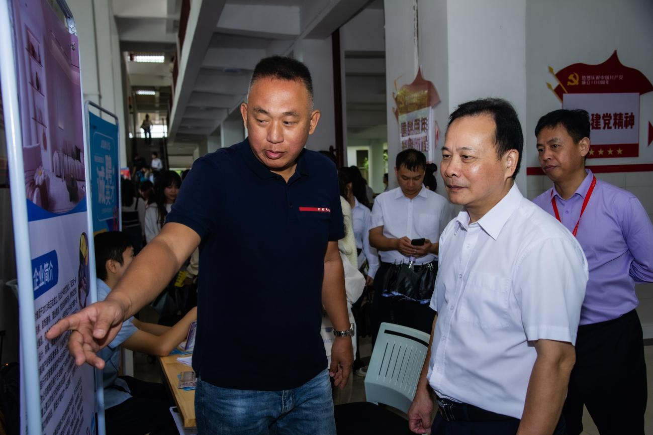 双选会上,学校党委书记黄明瑞在向各参会企业人员了解岗位需求情况和毕业生工作情况,与参加双选会的各高校毕业生亲切交流,鼓励毕业生树立积极的就业观,科学、准确应聘相关工作岗位。