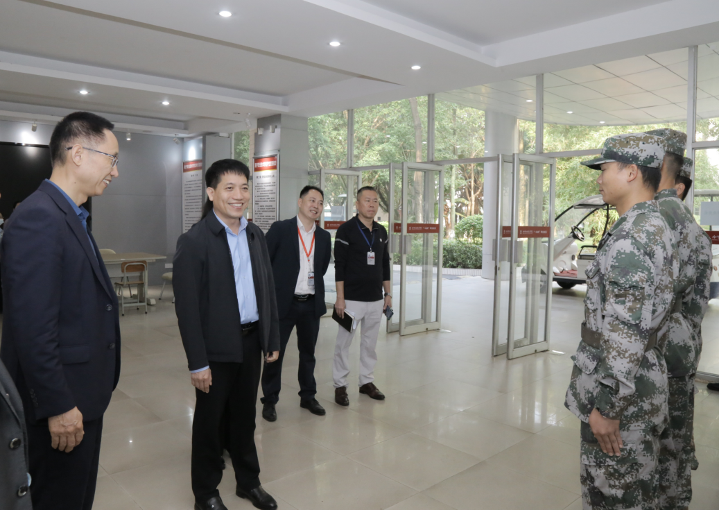 刘强业(居中)一行考察退役军人实训基地(梁译/摄)