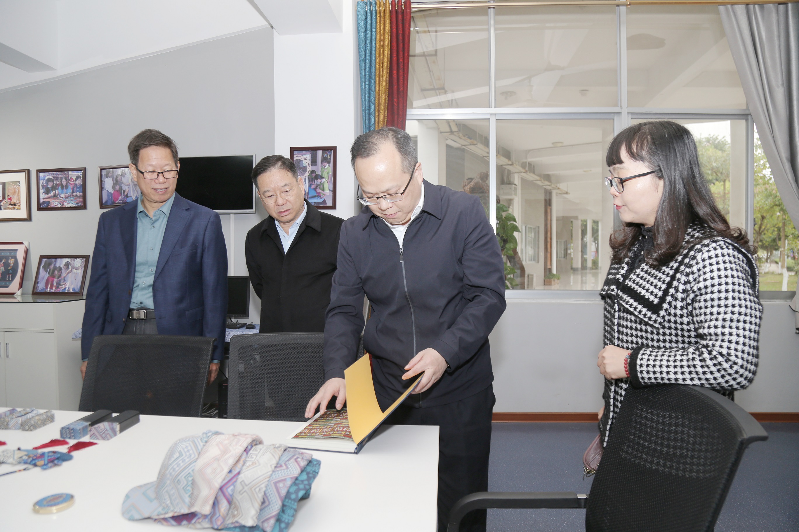 翁波一行实地考察艺术设计学院壮锦研究所(南职融媒杨惠钧/摄)