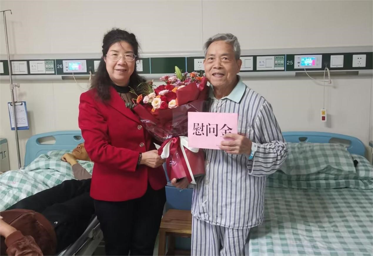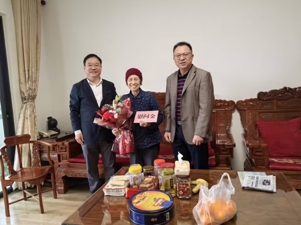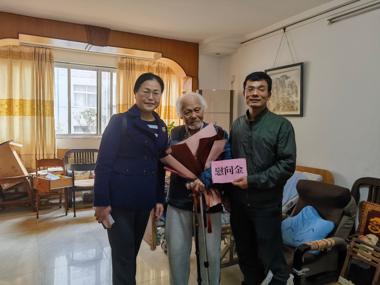 黄明瑞来到92岁高龄的离休干部刘哲家中,向她致以节日的问候与祝福,送去慰问金与慰问品,并向家属详细询问了她平日的生活状况和健康情况,嘱咐家属要悉心照顾,希望刘老保重身体,健康长寿,同时也介绍了学校当前的建设和发展情况。黄明瑞强调,老党员、老干部是学校的宝贵财富,他们为学校的发展做出了不可磨灭的贡献。学校一直秉承“以人为本”的理念,关心关爱老同志、关怀慰问生活困难同志,这是学校的优秀传统,希望老同志们能够保重身体,继续关注和支持学校的发展。