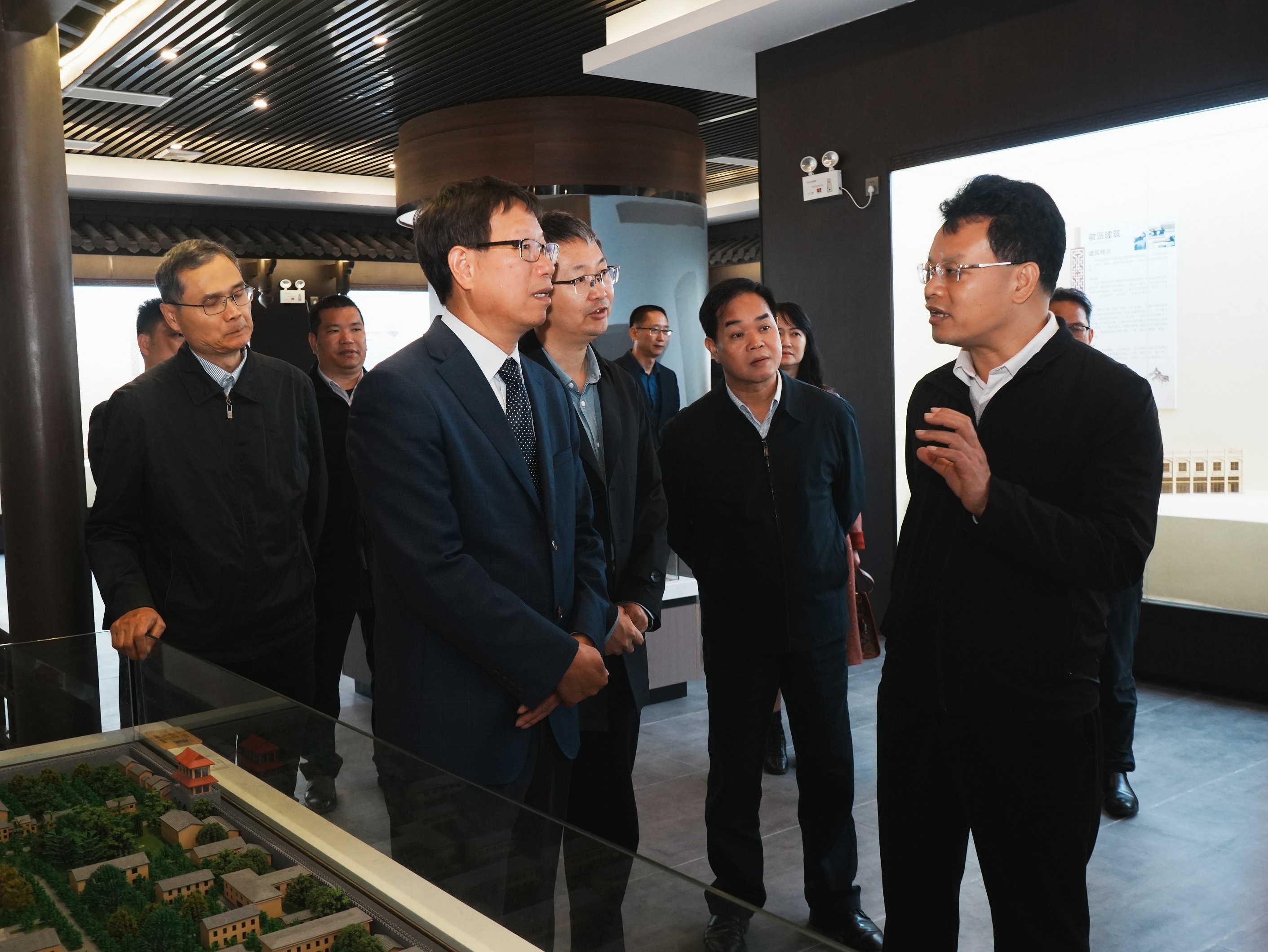 黄卫平(右一)一行实地考察必赢官网民族建筑博物馆(南职融媒何敏/摄)