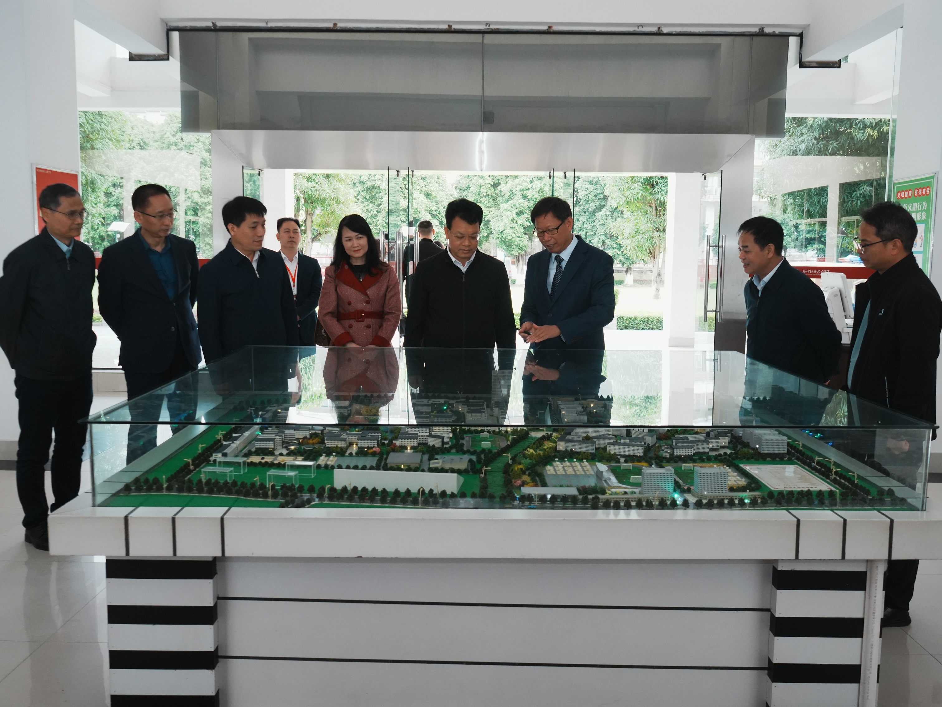 黄卫平(右四)一行观看学校沙盘模型(南职融媒何敏/摄)