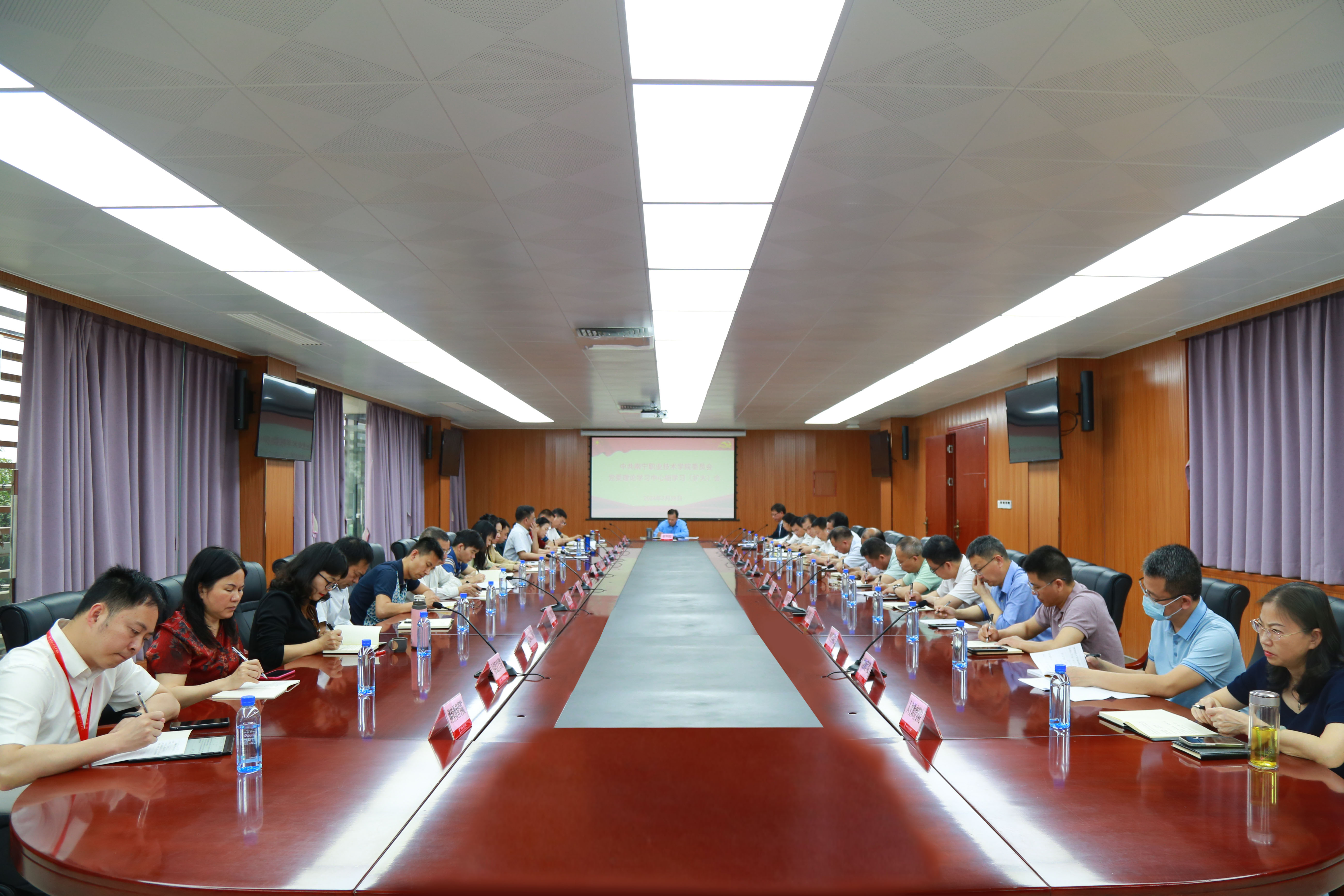 3月28日,必赢官网召开党委理论学习中心组学习(扩大)会,深刻领悟“两个确立”的决定性意义,深入贯彻落实习近平总书记对广西重大方略要求,完整、准确、全面贯彻新发展理念,学习习近平总书记在主持中央政治局会议审议主题教育总结报告和关于巩固拓展主题教育成果的意见时的重要讲话等精神;学习贯彻全国两会精神、全国全区教育工作会议、全国全区全市宣传部长会议、全区全市统战部长会议精神、总体国家安全观;学习全区省级领导和厅级主要负责同志学习贯彻习近平总书记视察广西重要讲话精神专题研讨班精神、清廉广西建设领导小组办公室2024年第1次全体会议精神;学习新修订的《中国共产党纪律处分条例》、《关于进一步压实高校师德师风建设主体责任的通知》精神等内容,研究部署学校的具体意见措施。学校党委书记黄明瑞主持会议并作讲话。学校领导、学校党委委员,各二级学院、各直属部门党政主要负责人参加会议。