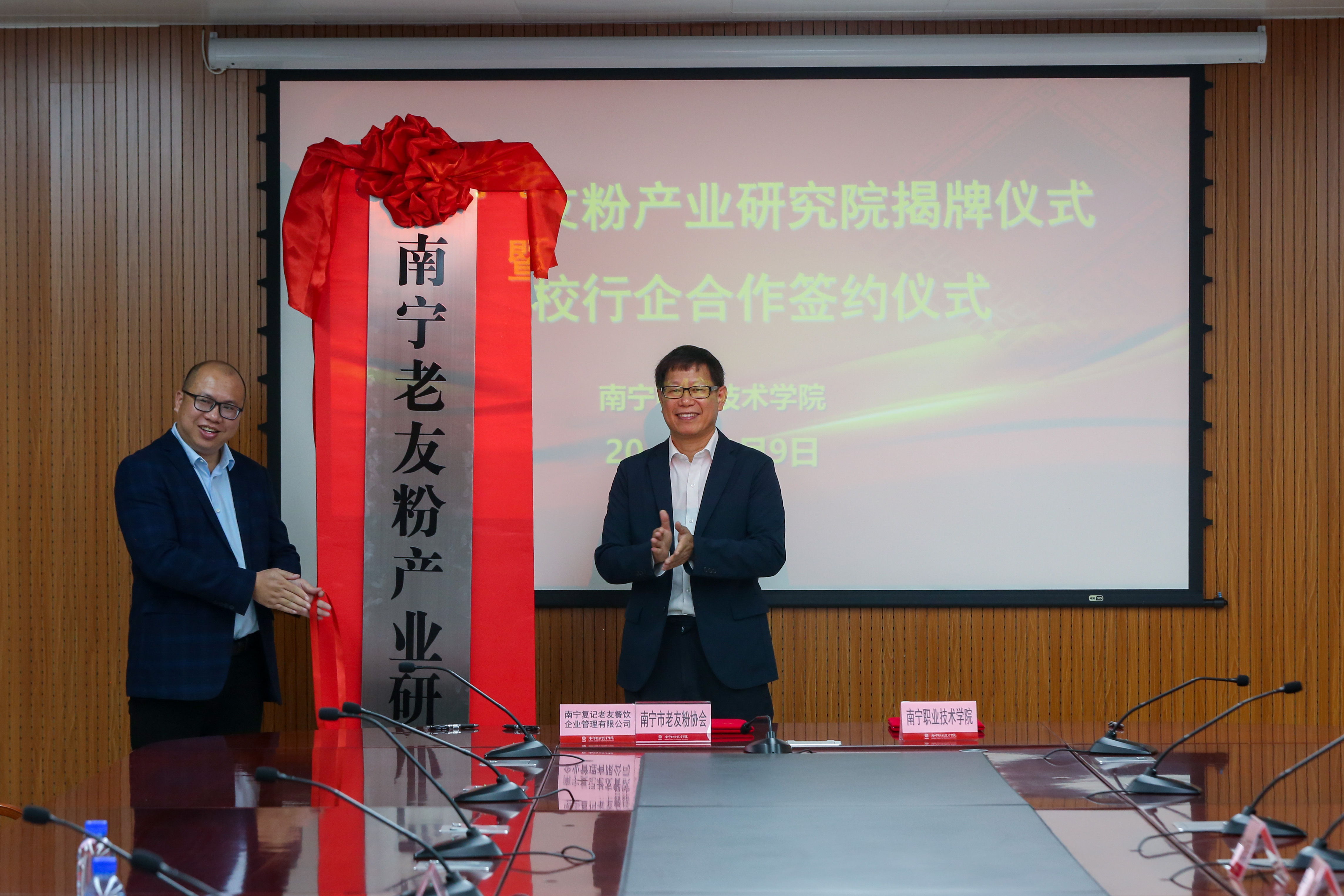 4月9日,必赢官网与南宁老友粉协会、广西南宁复记老友餐饮企业管理有限公司签订校行企三方合作协议,并共同为南宁老友粉产业研究院揭牌。学校校长周旺,广西南宁复记老友餐饮企业管理有限公司执行董事兼南宁老友粉协会会长梁宁,广西南宁复记老友餐饮企业管理有限公司总经理陆永明分别代表签约。