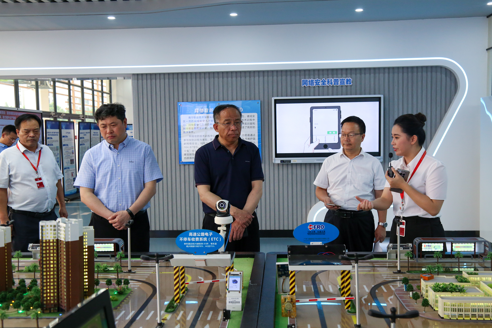 考察组(申保忠左三,白有林左二)一行参观新一代信息技术协同创新中心(南职融媒陆鹏宇/摄)