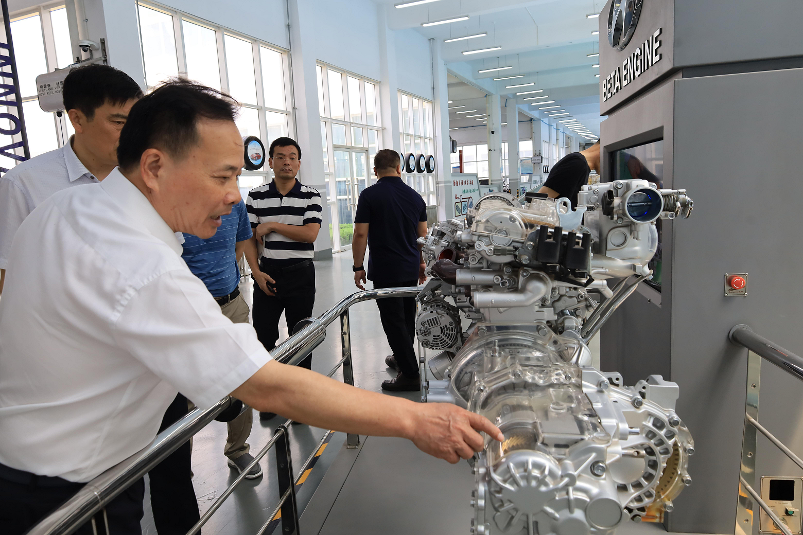 黄明瑞在日照职业技术学院参观设备