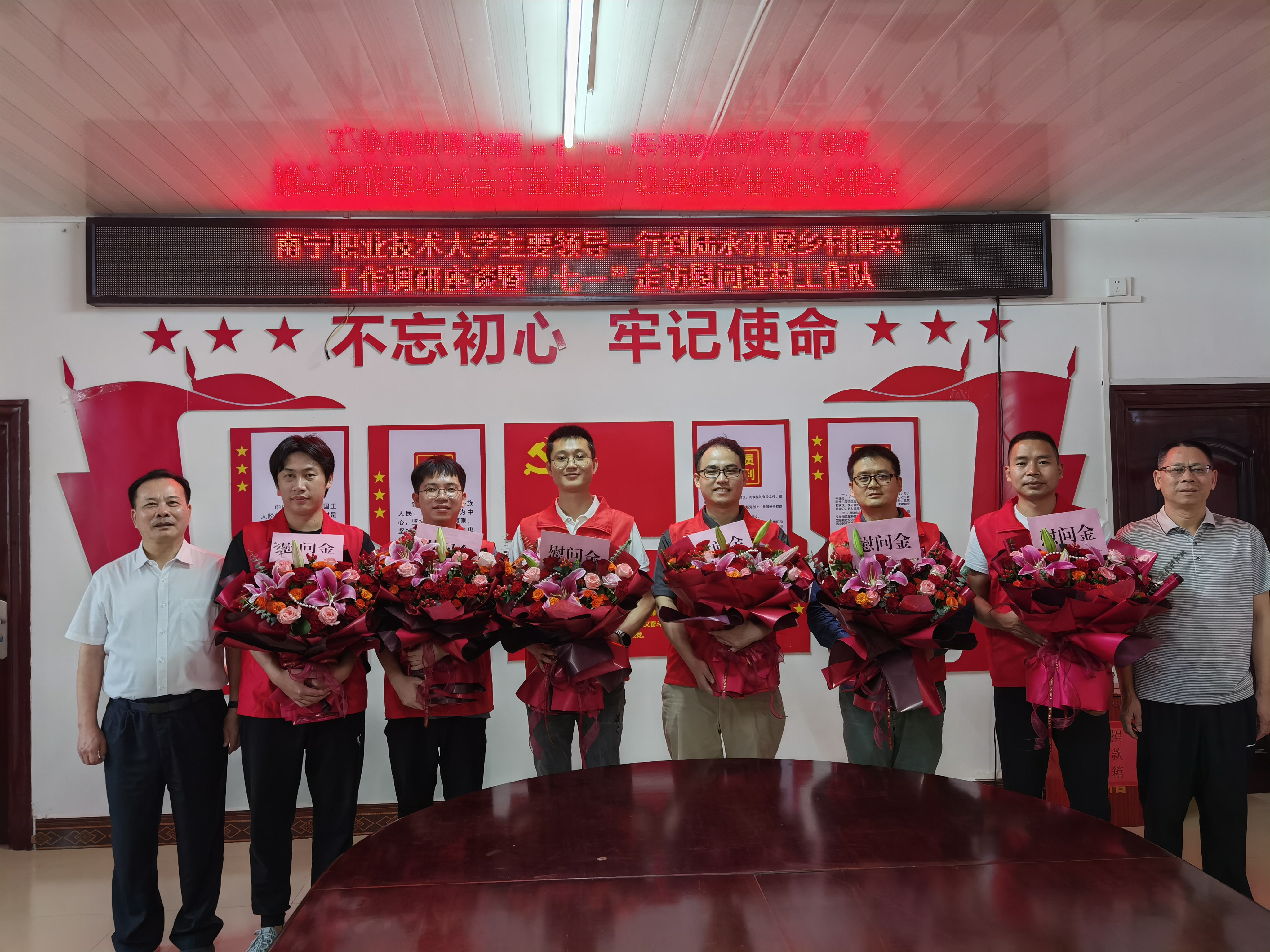 为进一步推进定点帮扶村乡村振兴工作,指导落实各项工作决策部署,6月26日,学校党委书记黄明瑞深入必赢官网定点帮扶的上林县白圩镇陆永村召开乡村振兴工作座谈会,开展“七一”慰问活动。学校党委副书记杨清源主持驻村第一书记工作座谈会。