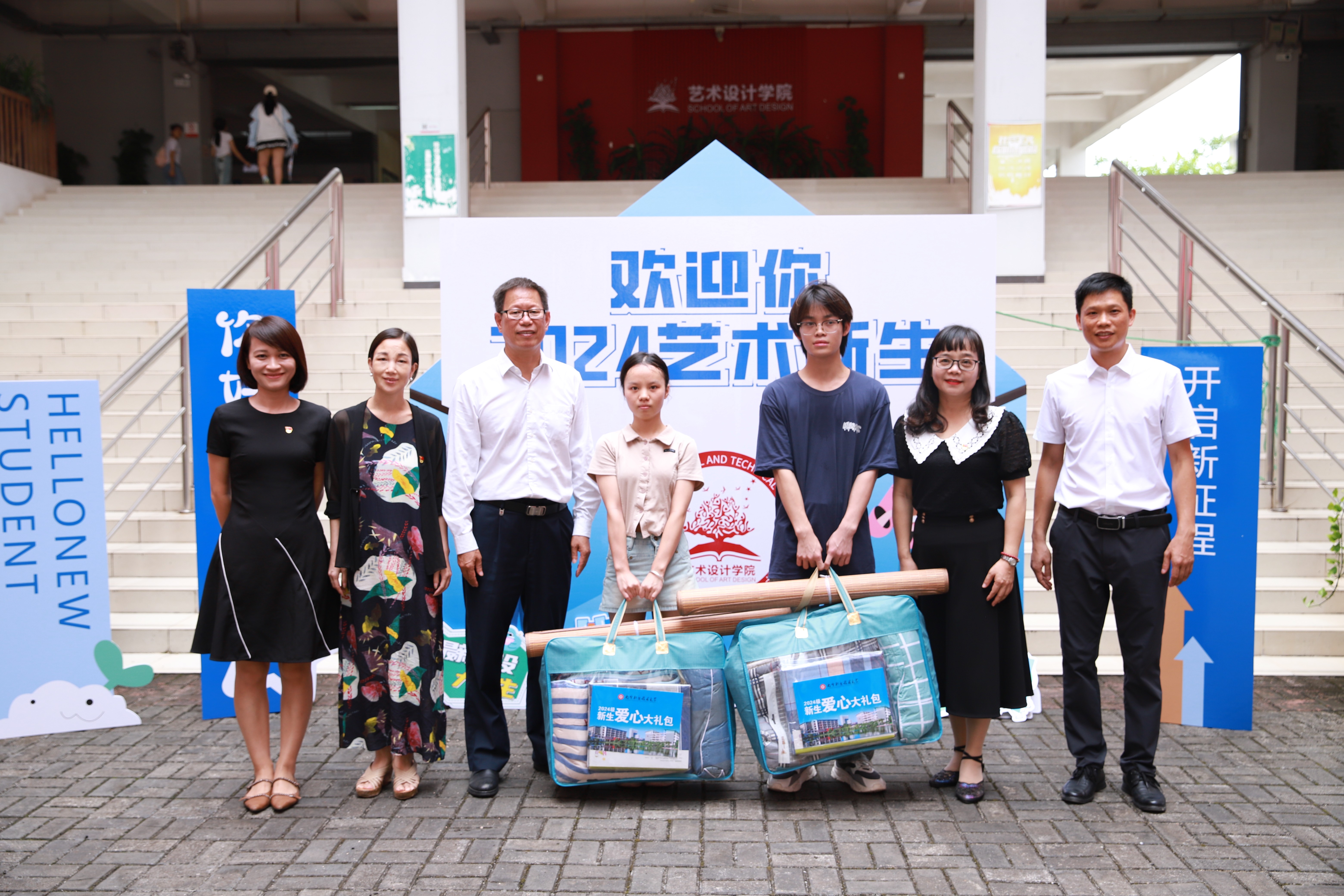 学校校长周旺来到艺术设计学院,为家庭经济困难学生送上爱心大礼包,并走访服装与服饰设计专业研发中心,仔细查看服装与服饰设计专业师生的设计作品,以及与李宁公司共同研发的运动鞋,详细了解该专业的报到率和就业率。在给予肯定的同时,周旺提出要强化与李宁公司的合作,进一步促进产教融合。