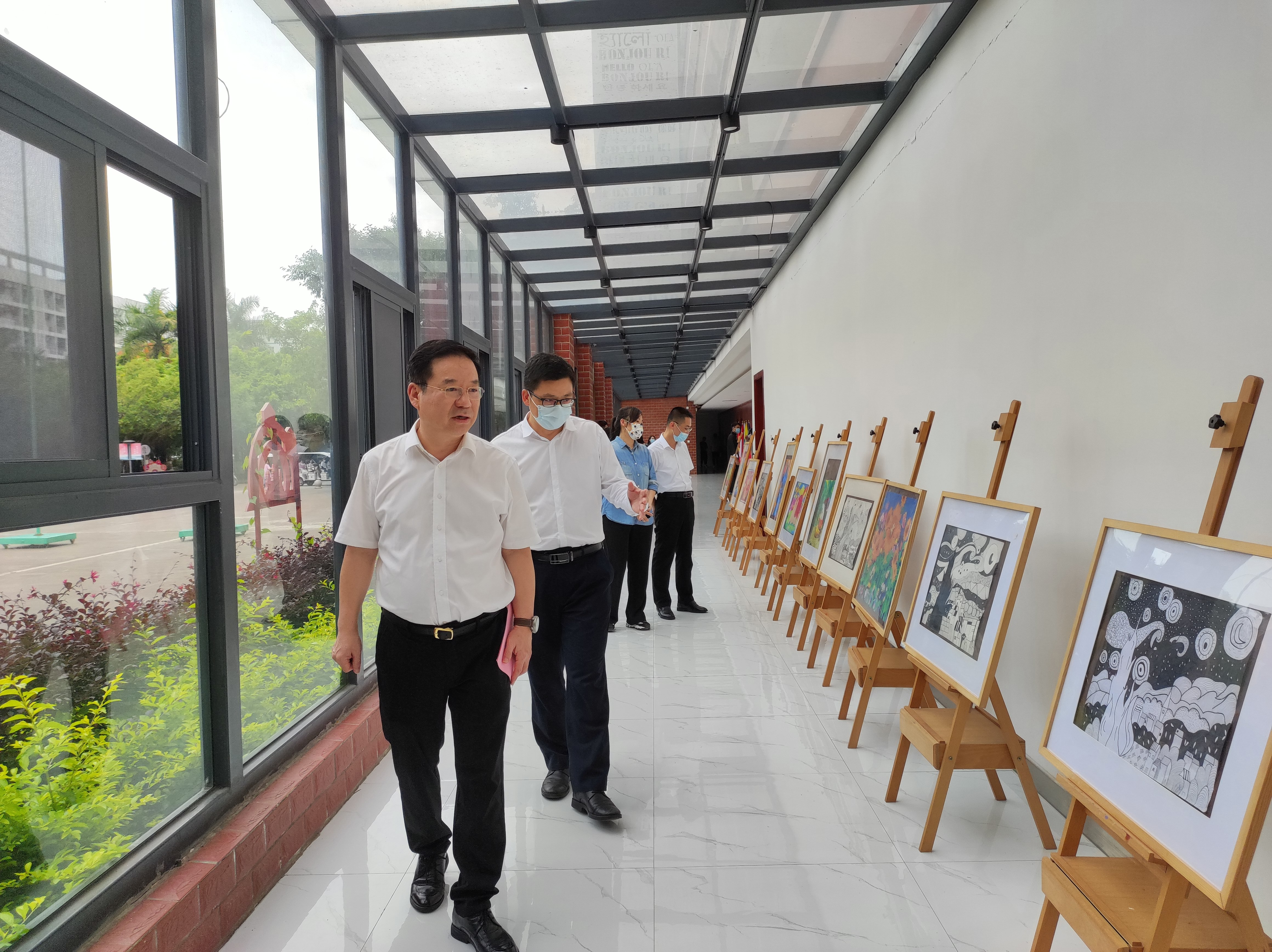 黄春波参观学前专业绘画作品(王静/摄)