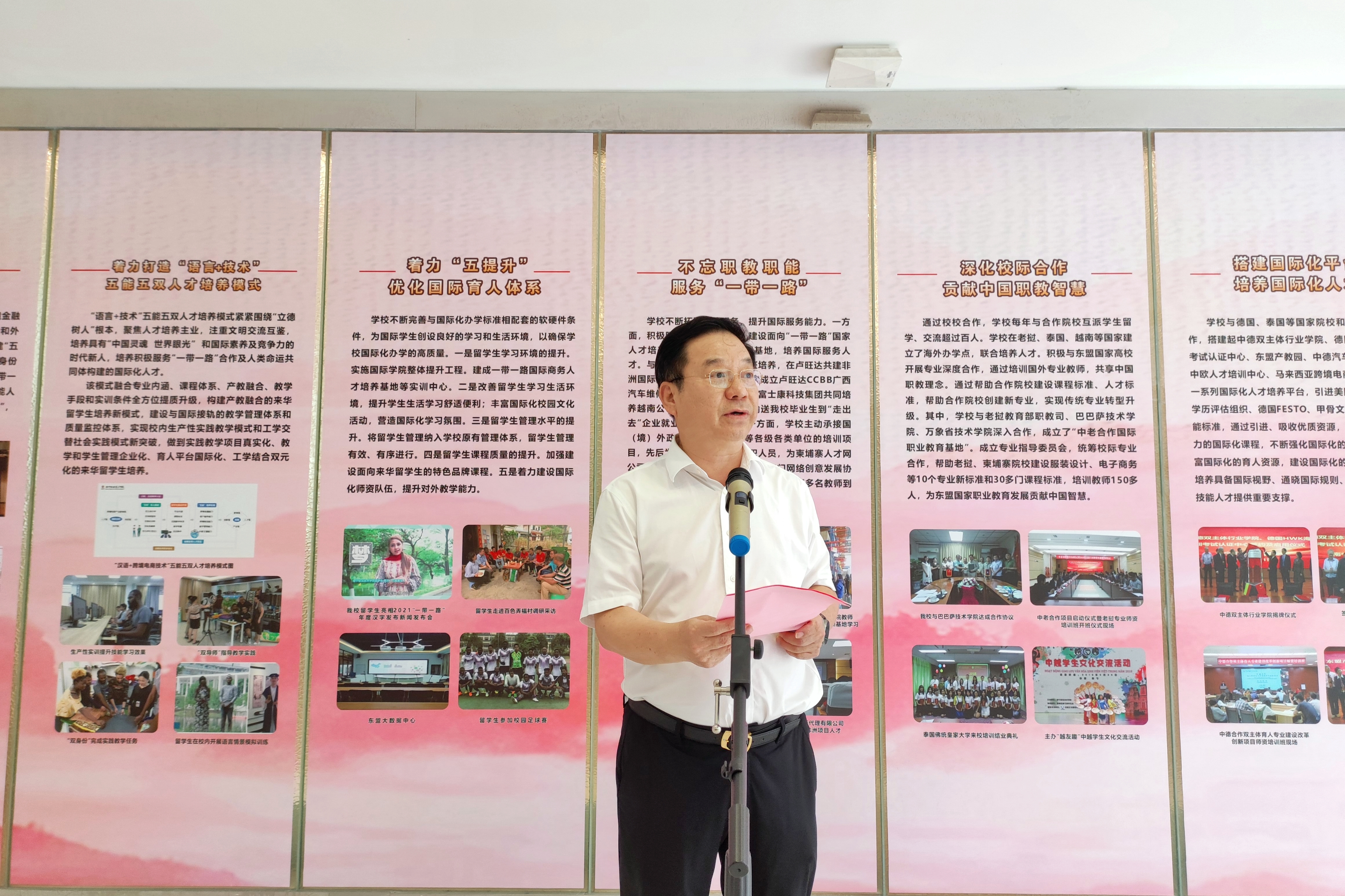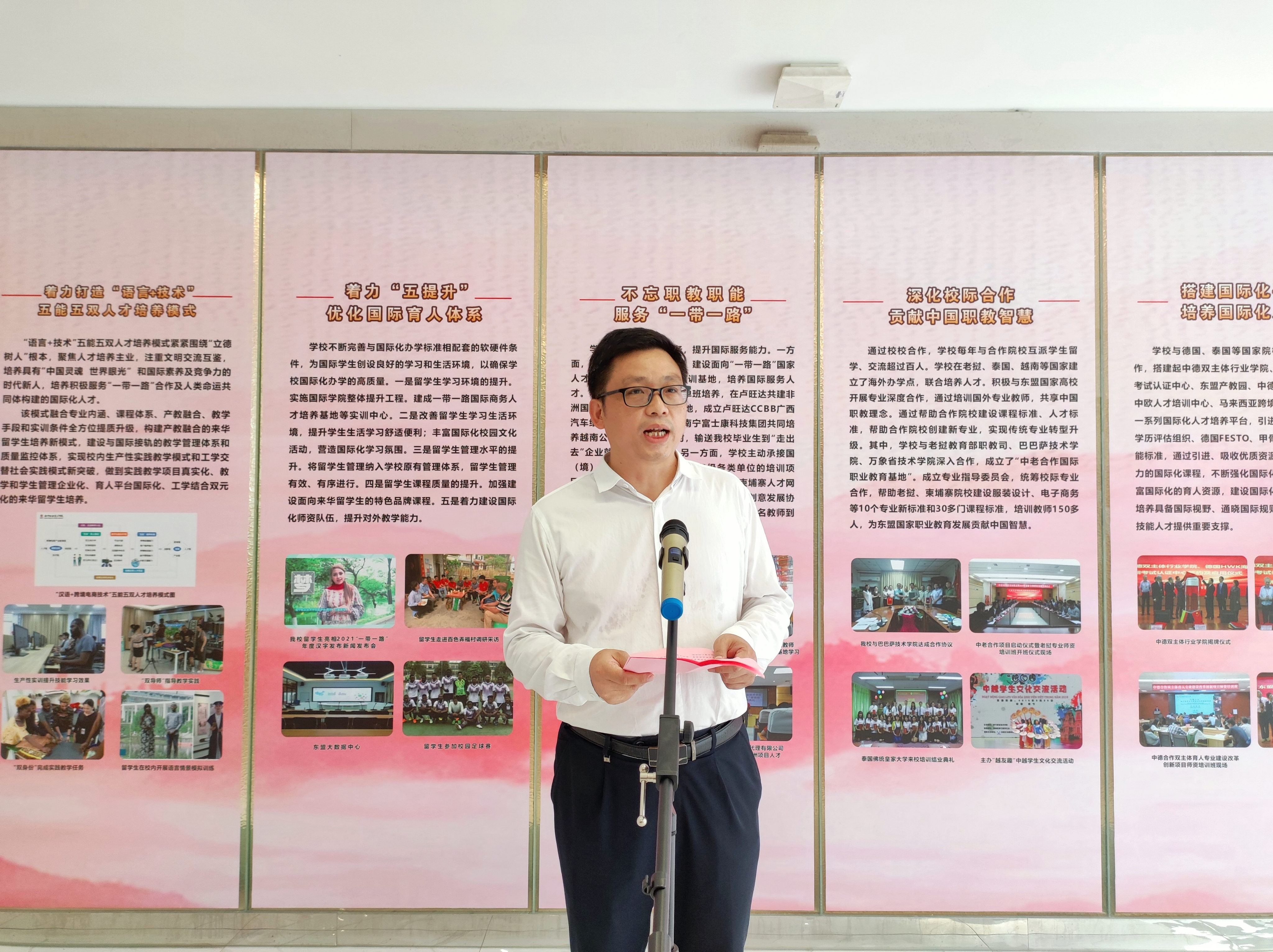 张治中表示,国际学院将进一步学习好、宣传好、贯彻好职业教育法,紧紧围绕学校“双高”建设和升本中心工作,落实立德树人根本任务,深化产教融合、校企合作、“三教”改革、内涵建设,加强学生职业道德、科学文化与专业知识、技术技能等职业综合素质和行动能力培养,不断强化国际化办学特色,以实际行动为学校发展作出应有贡献。