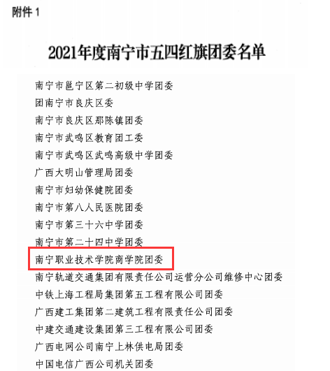 南宁职业技术学院商学院团委被评为“五四红旗团委”