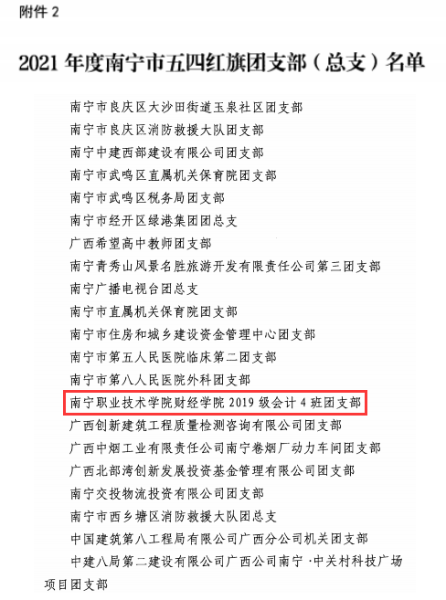南宁职业技术学院财经学院2019级会计4班团支部被评为“五四红旗团支部”