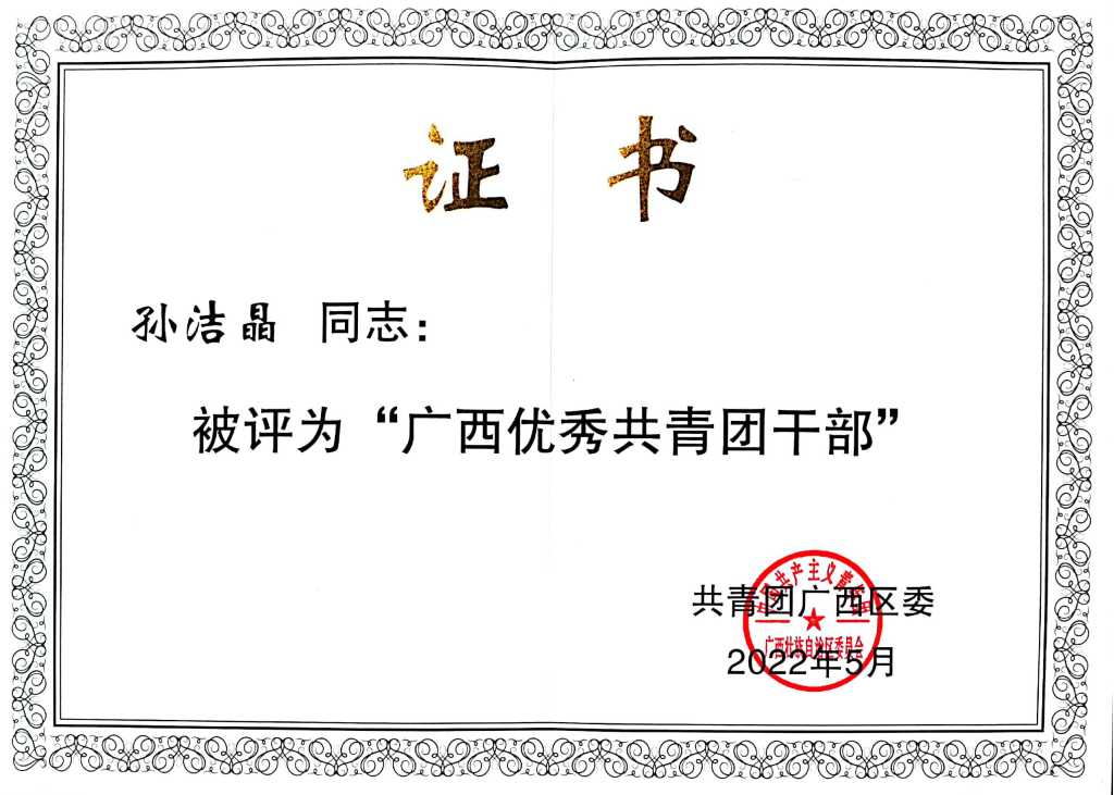 必赢官网团委副书记孙洁晶被评为“广西优秀共青团干部”,商学院团委被评为“南宁市五四红旗团委”,财经学院2019级会计4班团支部被评为“南宁市五四红旗团支部”,人工智能学院团委书记舒祥荣、建筑工程学院团委副书记任静被评为“南宁市优秀共青团干部”。