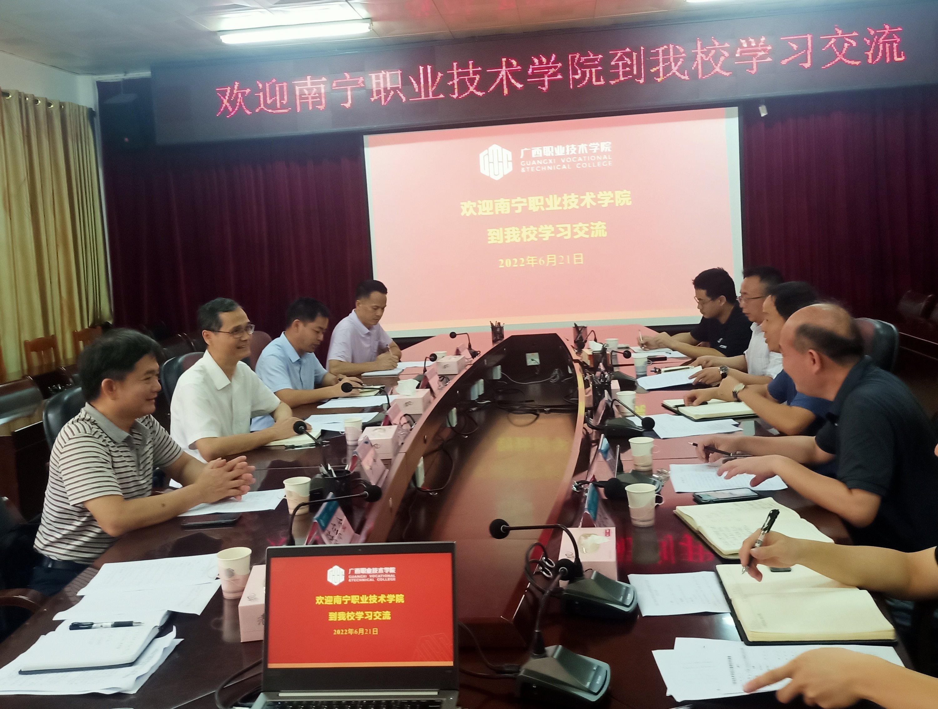 6月21日下午,学校副校长万玉文带领学生工作部(武装部、学生工作处)、安稳办负责人及相关工作人员,到广西职业技术学院考察交流校园安全保卫工作。广西职业技术学院副校长林松以及安稳处主要负责人参加活动。