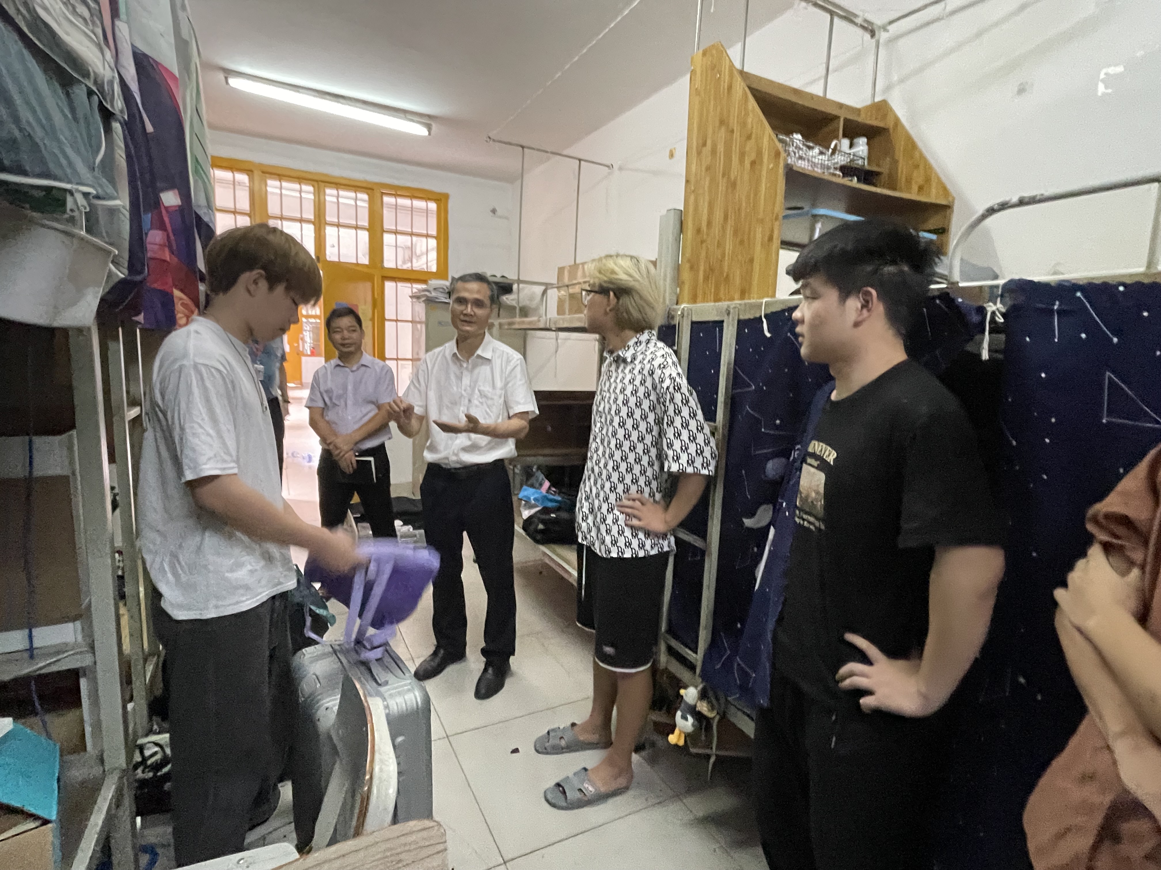 6月28日上午,学校副校长万玉文深入学生宿舍,就暑期前学生宿舍卫生及安全教育工作落实情况进行检查。学生工作部(处)副处长莫家业及有关人员一同参加检查。
