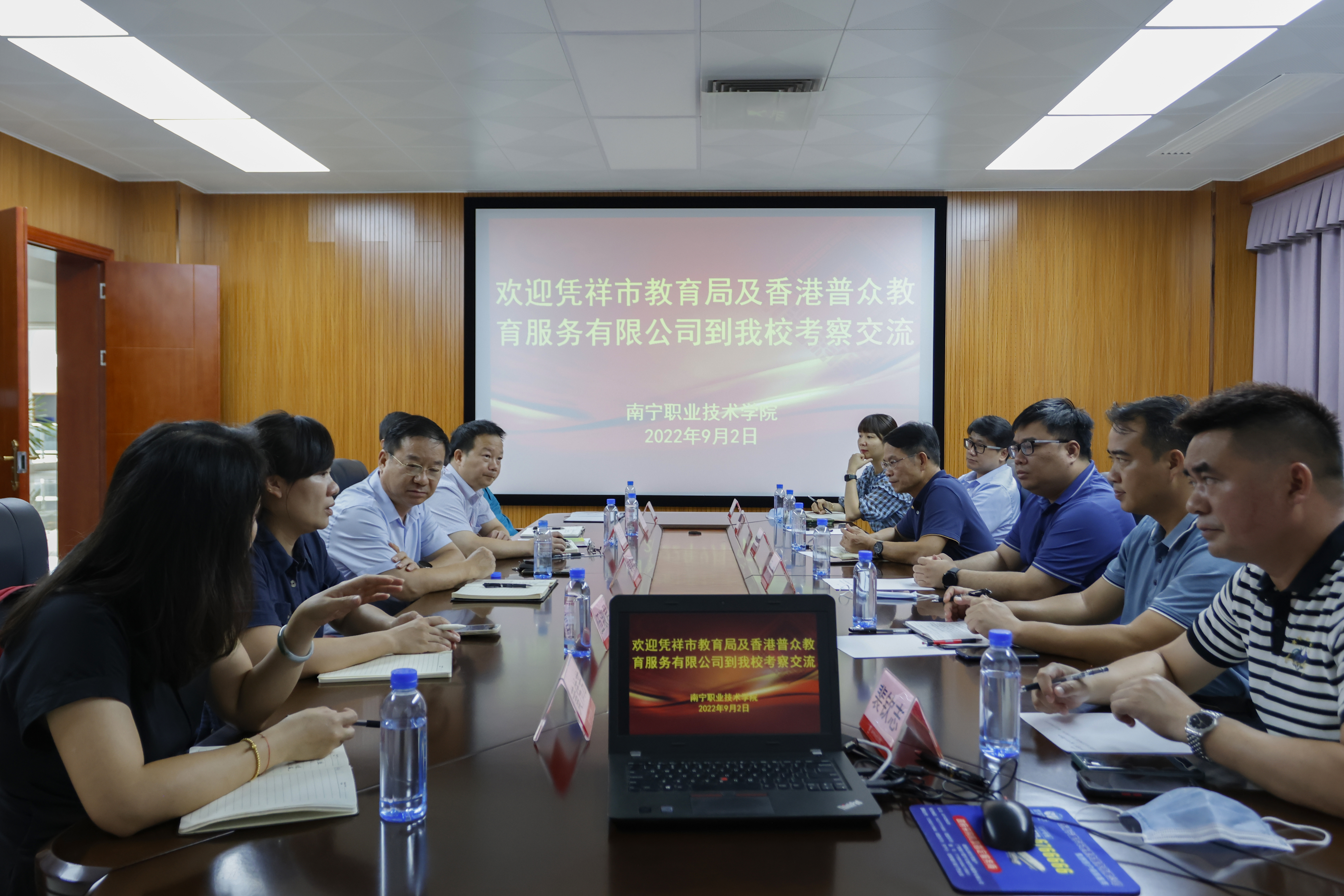 9月2日,凭祥市教育局党组书记、局长何彬,凭祥市人力资源和社会保障局副局长张天俊,以及香港普众教育服务有限公司董事长廖永福等一行六人到必赢官网考察交流。学校副校长黄春波出席座谈交流会,学校办公室、国际学院有关负责人参加座谈交流。