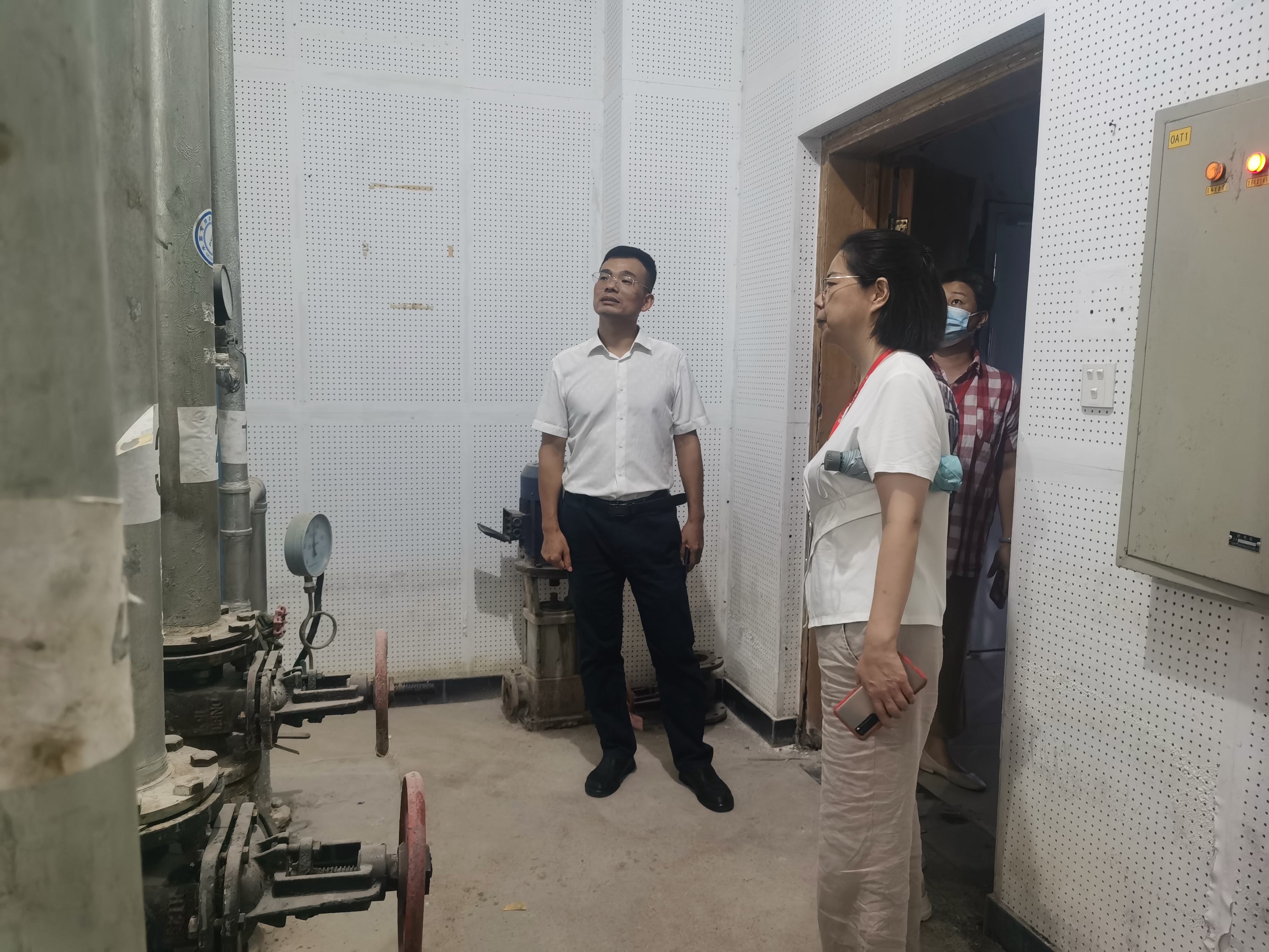 李东升查看图书馆大楼消防水泵房(胡海燕/摄)
