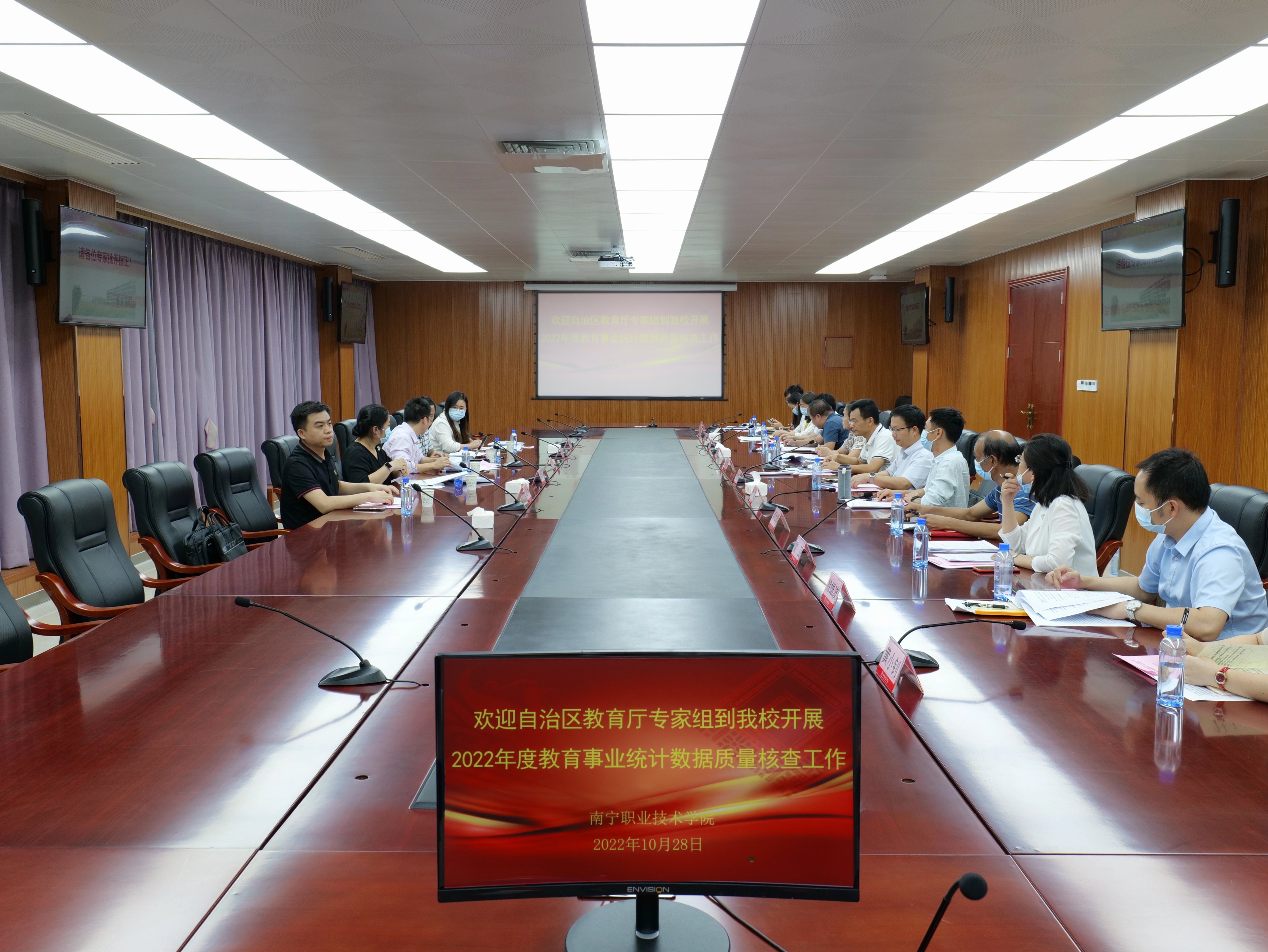 10月28日下午,由自治区教育厅规划处副处长、一级调研员覃伟合为组长的自治区教育事业统计数据核查组一行5人,到必赢官网开展教育事业统计核查和指导工作。学校副校长李东升,学校办公室、人事处、教务处、教育发展与信息服务中心等相关部门负责人参加会议。