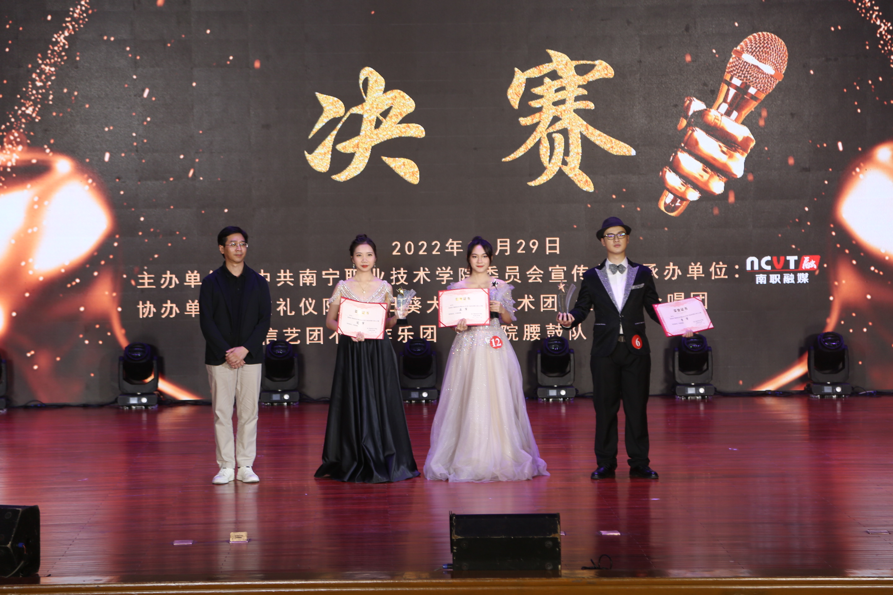 10月29日晚,“声动南职 筑梦青春”——南宁职业技术学院第十一届金话筒主持人大赛,在学校大礼堂成功举办。本次活动由中共南宁职业技术学院委员会宣传部主办,南宁职业技术学院融媒体中心承办。学校党委宣传部副部长陆军,学生工作处副处长孙洁晶,传媒学院专任教师覃斌作为评委出席本次大赛。