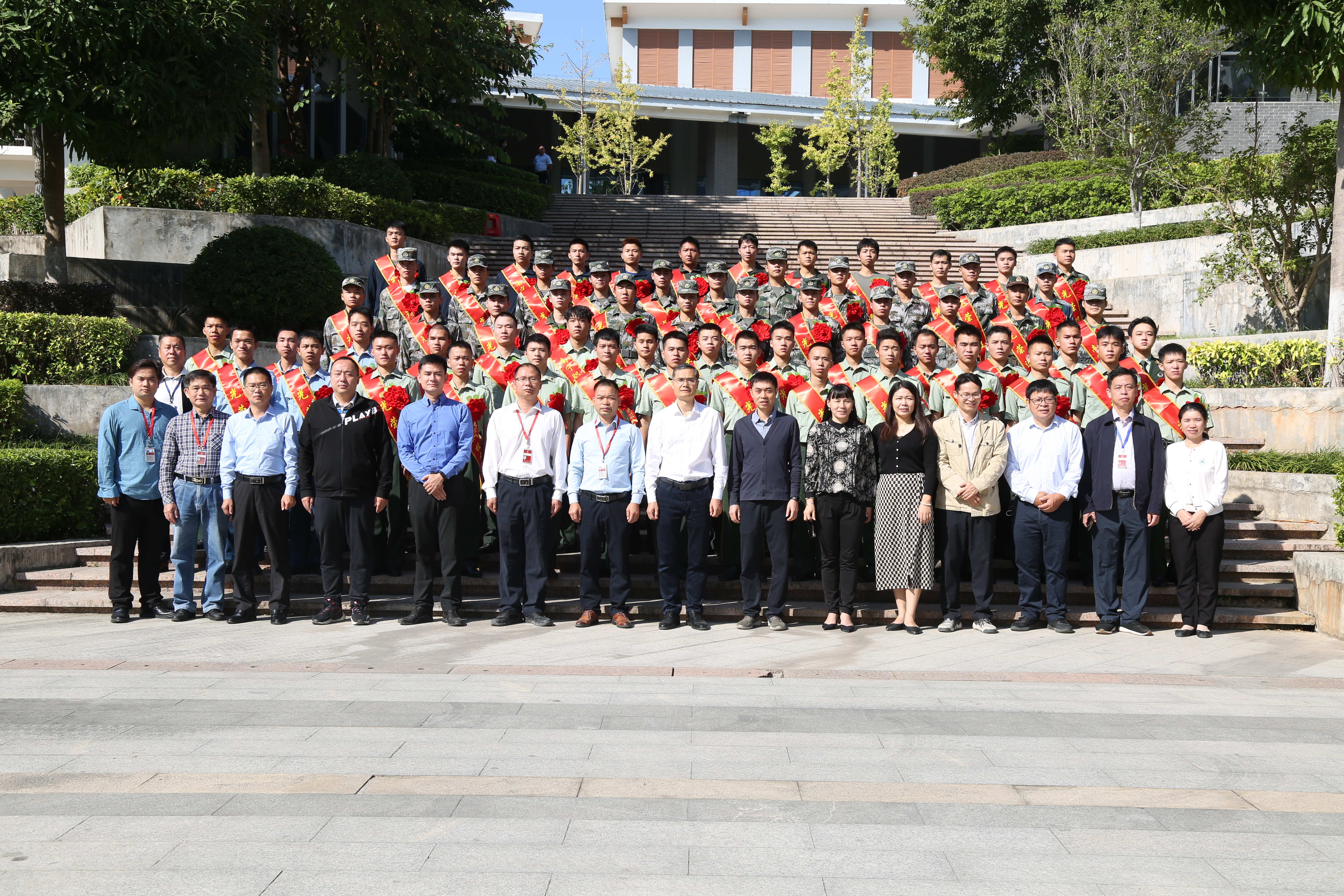 校领导与退伍复学大学生合影(南职融媒黄显璐/摄)