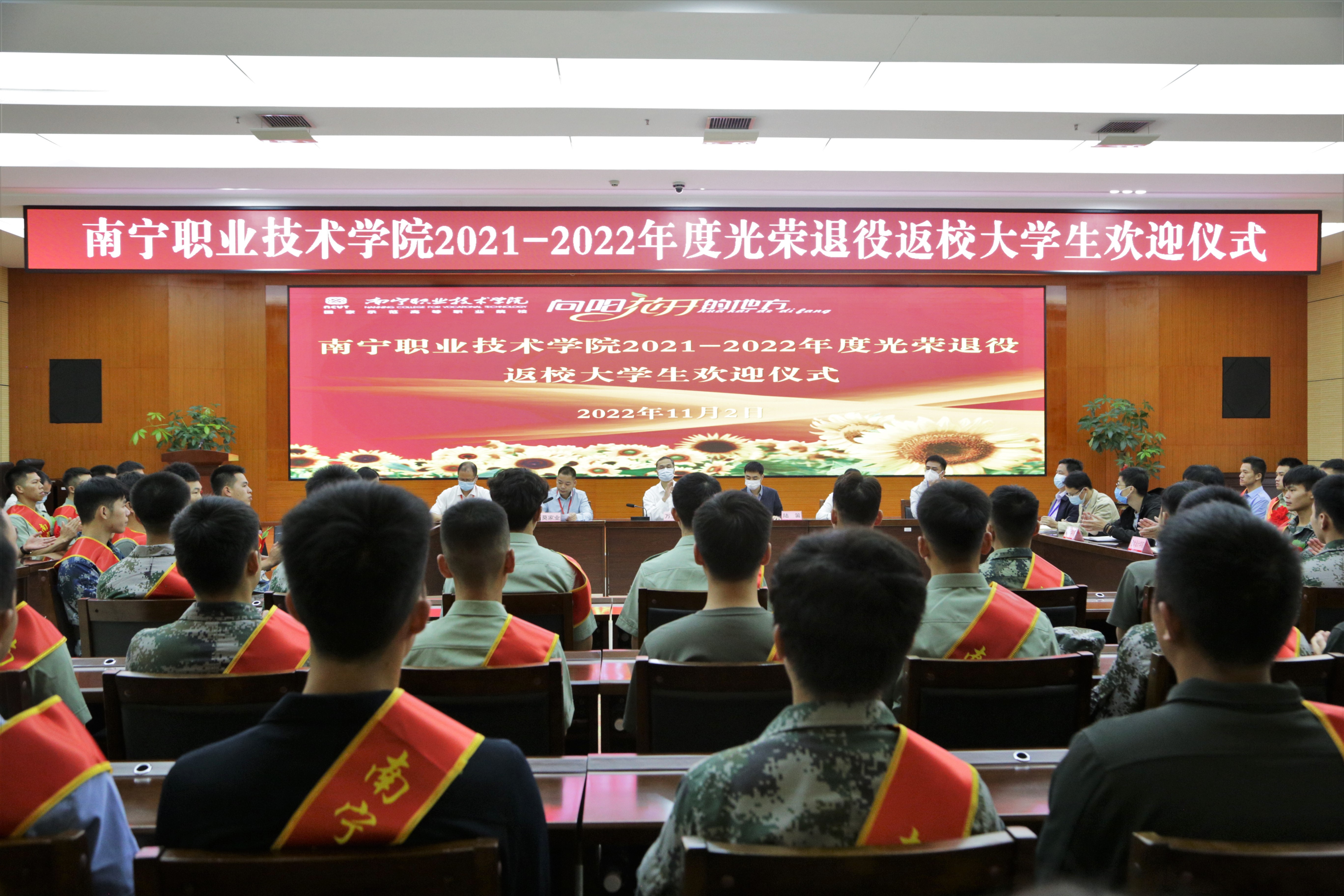 会上,学校征兵工作站长陆笛介绍2021—2022年度学校退役学生基本情况。学校退役复学大学生叶汕汕作为代表发言。