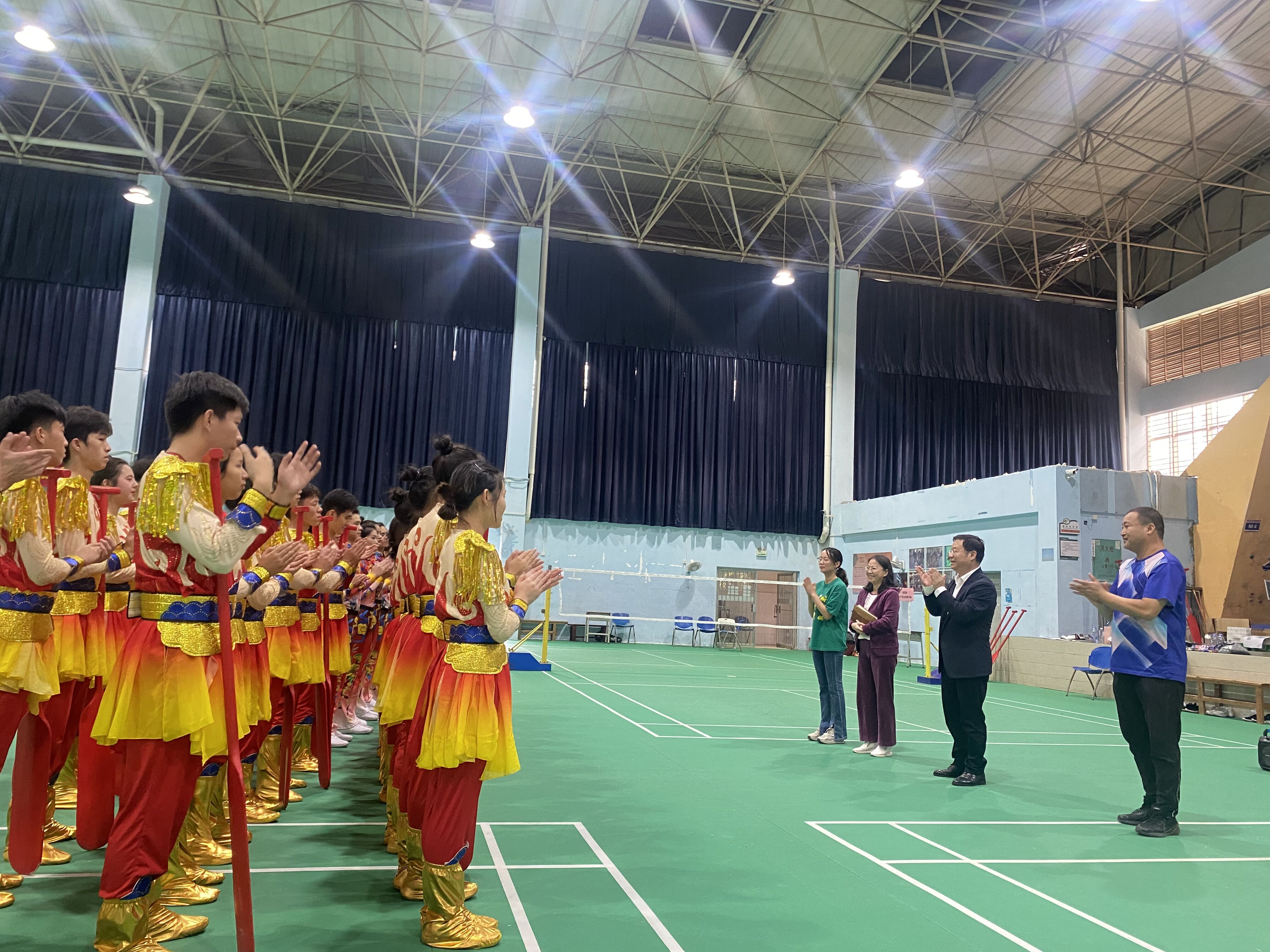 黄春波现场观看了表演项目、民族健身操等项目的展示,充分肯定了教练员及运动员们在备赛期间的训练成效,对各支队伍的辛勤付出表示感谢。他表示,代表南宁市参加区民运会是一种荣誉,也是一种责任,在比赛中要始终牢记“不甘人后、敢为人先”的南职精神,严格执行疫情防控措施、赛事纪律要求,高度重视出行安全,牢牢树立为校争光的意识,以顽强作风、精湛技艺,出色完成各项参赛目标,为学校增光添彩。