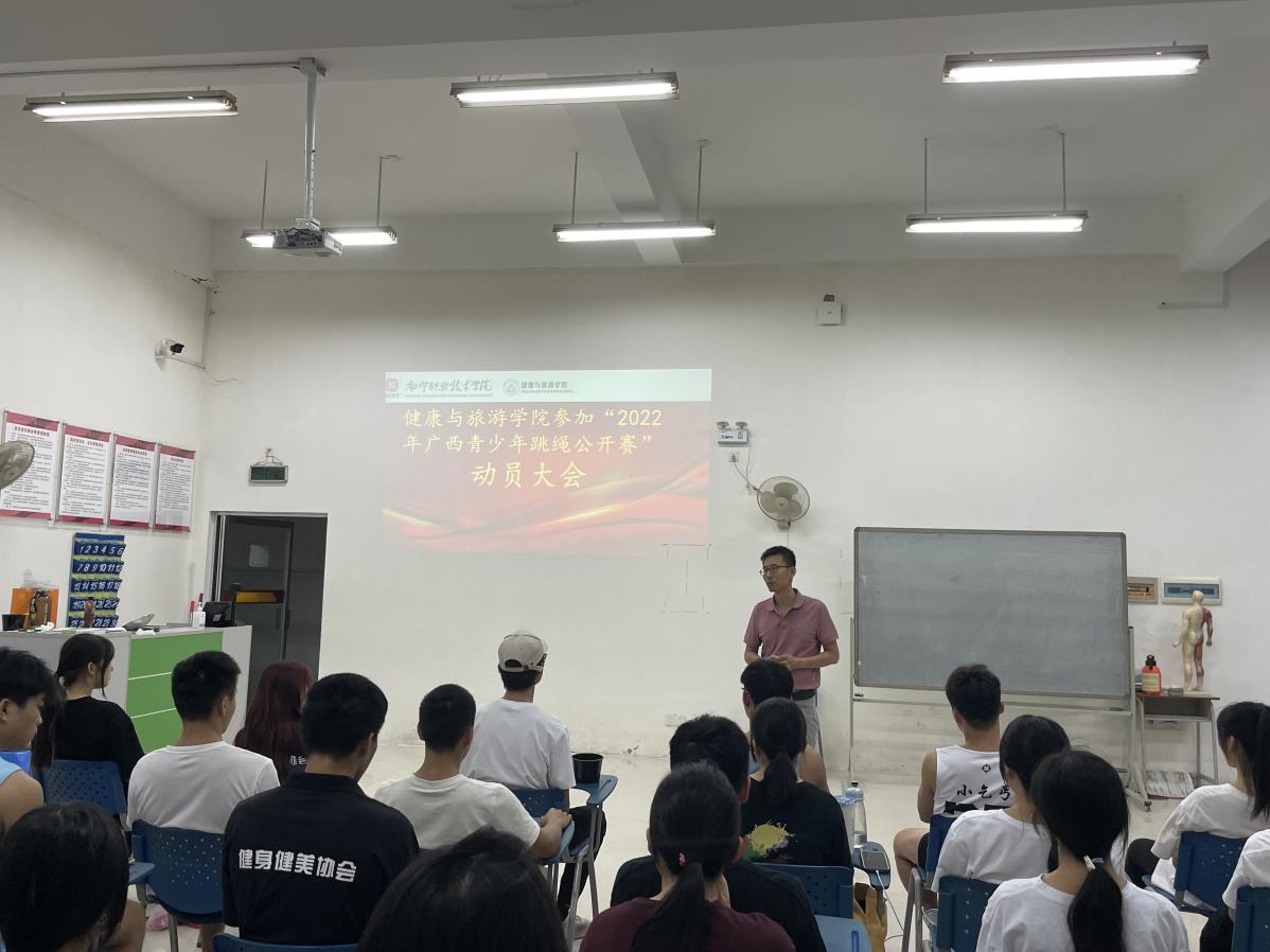 为了参加本届广西青少年跳绳公开赛,健康旅游学院高度重视,精心筹备,成立了以屠瑞旭院长为领队,李正洪、文慧、杨大宁、杨涪钧为教练,健康与旅游学院健康团队25名学生为队员的竞赛团队。在备赛过程中队员们不畏苦难,科学训练,比赛中敢于拼搏,最终在比赛中获得佳绩。