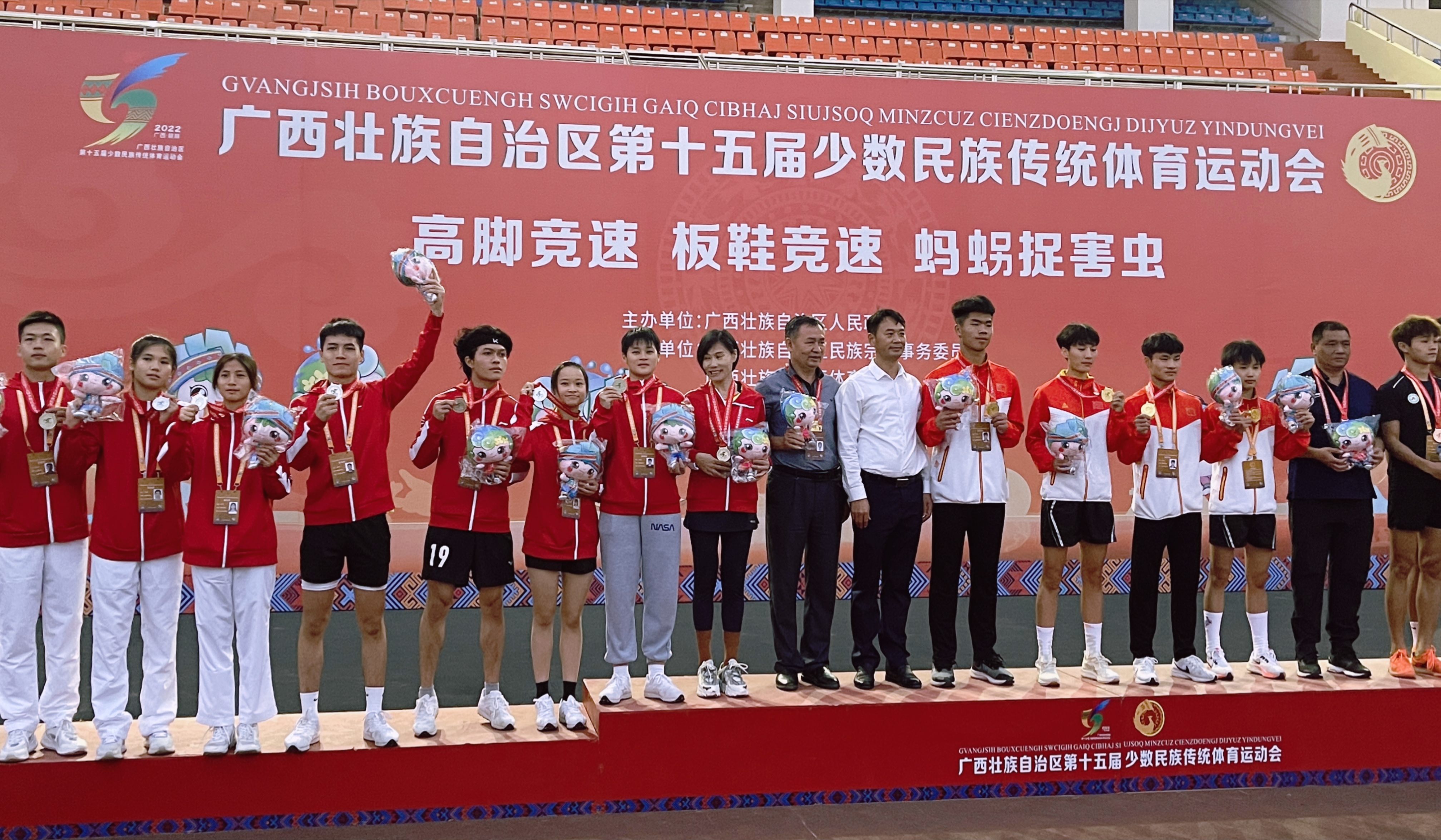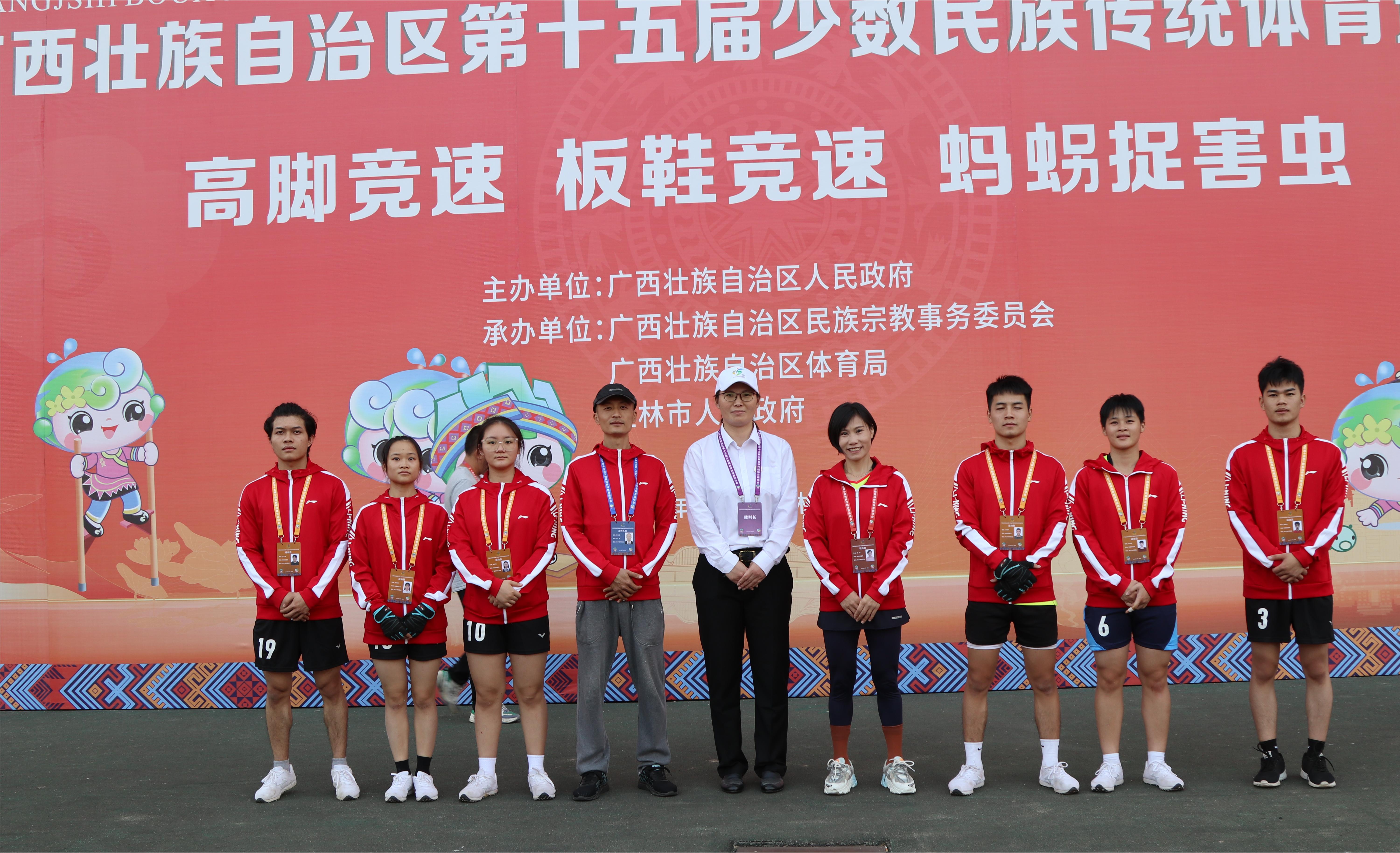11月11日至13日,广西壮族自治区第十五届少数民族传统体育运动会第二阶段比赛在广西桂林中心体育场开赛,必赢官网代表队在“蚂捉害虫”项目男女混合接力4*20米折返比赛中,团结合作、奋力拼搏,最终从12个参赛队伍中脱颖而出喜获银牌。