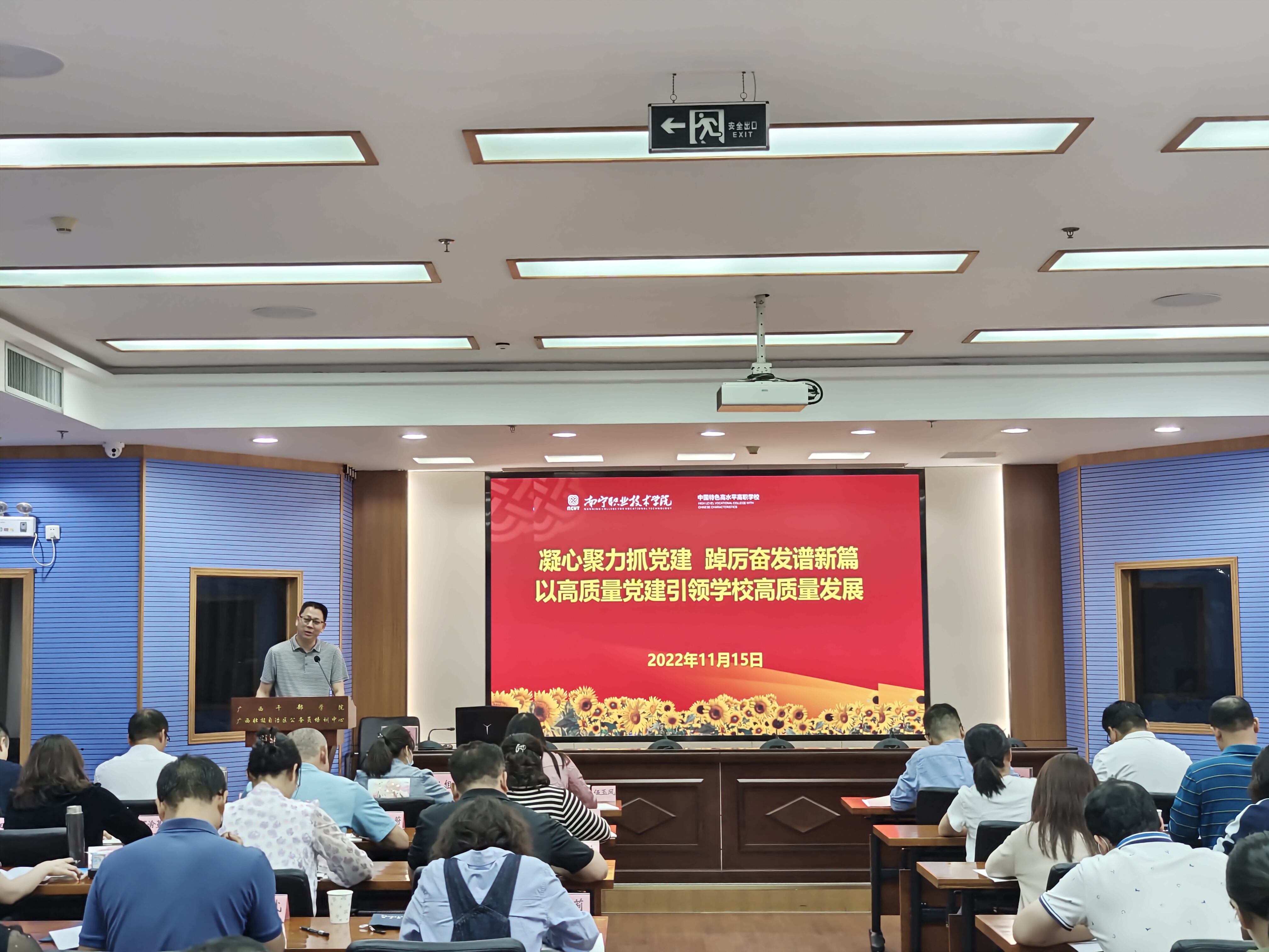 杨清源强调,加强党的建设工作是推动学校各项事业高质量发展的基础与保障,作为一名基层党务工作者,要自觉筑牢信仰之基、补足精神之钙、把稳思想之舵,以上率下,结合“双高”建设和升本目标,充分发扬“不甘人后、敢为人先”的南职精神,把学习的成效转化为推动学校基层党建工作提质量、出特色、上水平的动力,切实推进学校党建工作规范化科学化水平再上新台阶,为推进学校更高水平、更高质量发展添砖加瓦。
