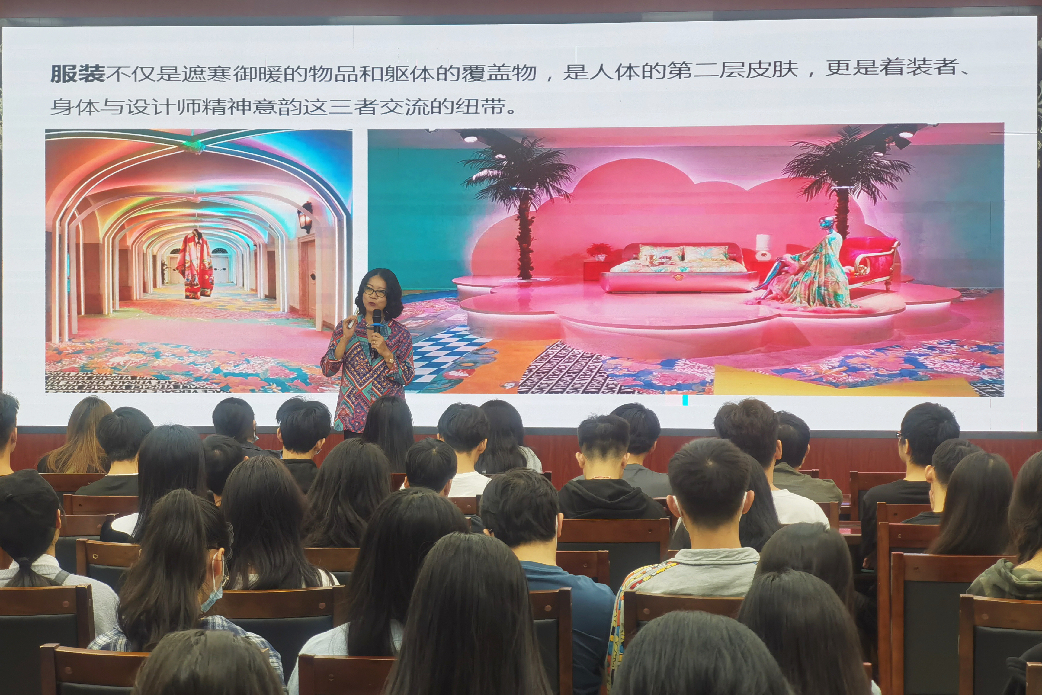 作为国内形象美学领域资深专家和时尚生活美学的倡导者,黄焱冰在讲座中将抽象的美学知识转化成通俗易懂的语言,结合现代生活中的流行文化现象,剖析衣与生活美学深层次的内涵,让学生透过现象看到本质,引导学生从自然环境、社会生活以及相关专业领域中去感受美、发现美、欣赏美,从而达到珍赏美、保护美、创造美的目的,帮助学生树立正确的审美观和价值观,进一步提高学生品鉴和欣赏美的能力。