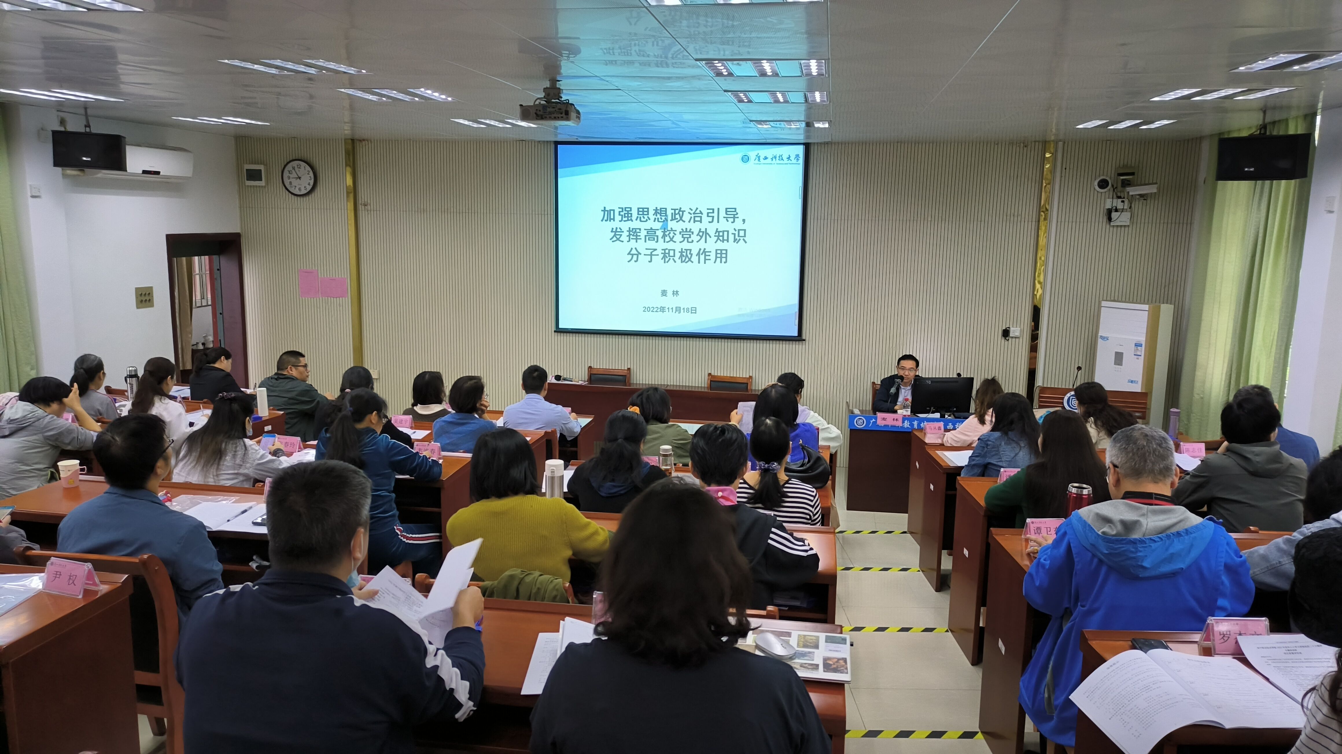 11月14日至18日,必赢官网党外人士学习贯彻党的二十大精神专题培训班在广西科技大学顺利举办。学校统战干部、民主党派人士代表、党外知识分子代表等40人参加培训。学校党委委员、党委组织部(统战部、人事处)部长(处长)邓斌出席开班式并讲话。