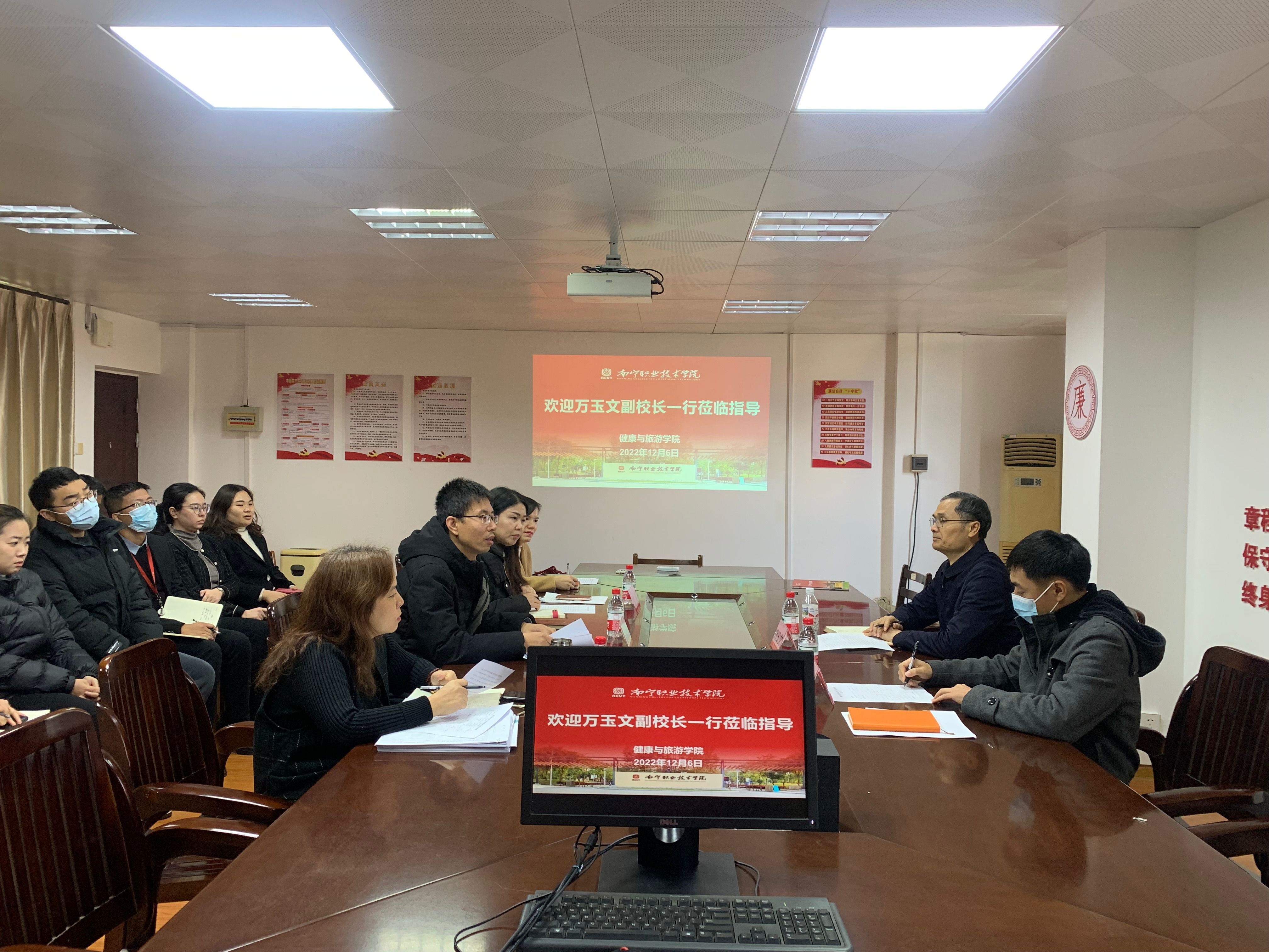 12月6日下午,学校副校长万玉文到健康与旅游学院开展学生工作专题调研,学生工作处(部)副处长陆笛陪同调研。健康与旅游学院党委书记、院长屠瑞旭,党委副书记袁榕,副院长卢睿及全体辅导员参加调研。