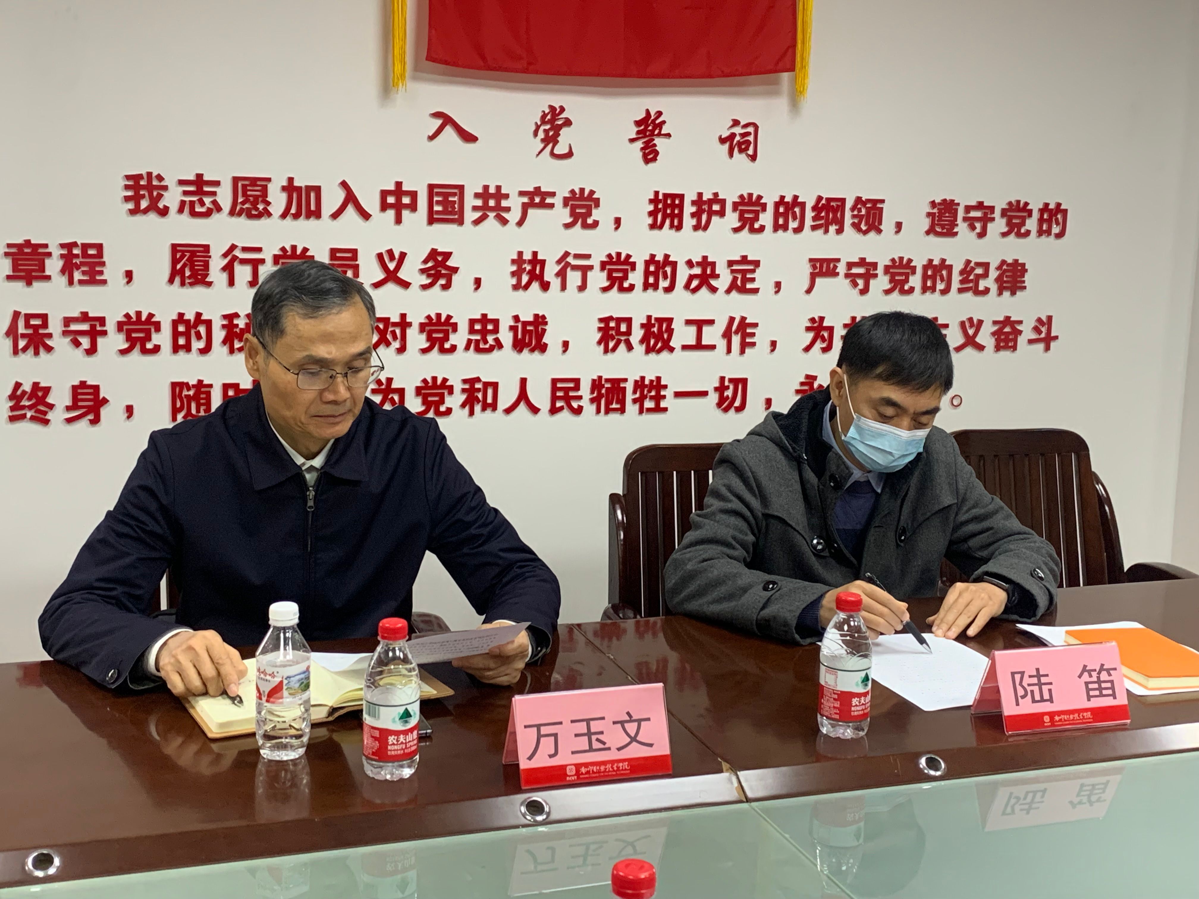 万玉文听取工作报告(健康与旅游学院李想/摄)