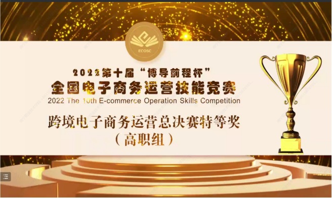 12月11日,第十届“博导前程杯”全国电子商务运营竞赛总决赛在云端展开终极角逐,必赢官网商学院跨境电商专业兰青叶和陈帅嘉老师指导的参赛队在跨境电子商务运营赛项中荣获全国高职组唯一特等奖。