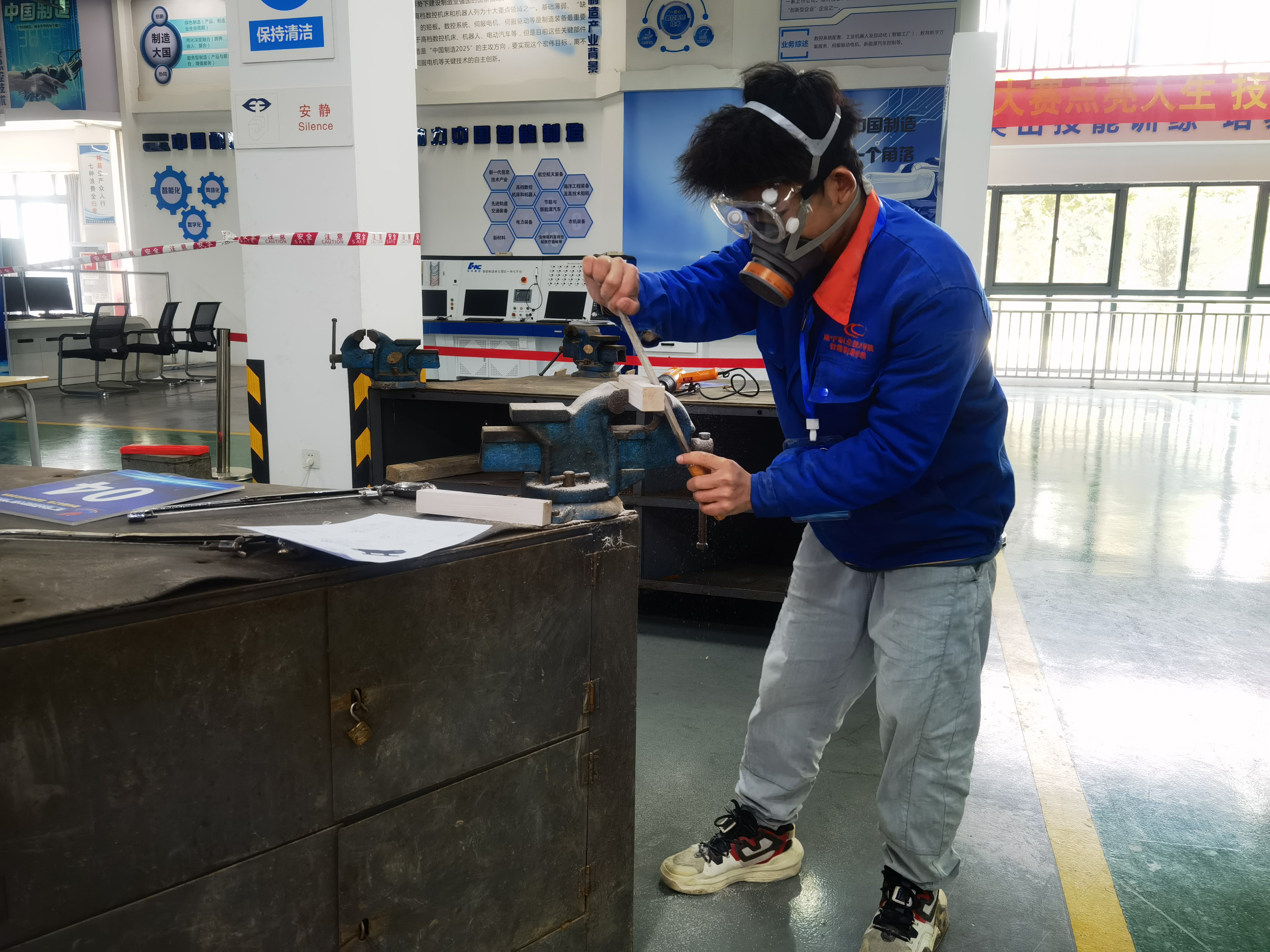 原型制作赛项选手在进行钳工作业(伍贤洪/摄)