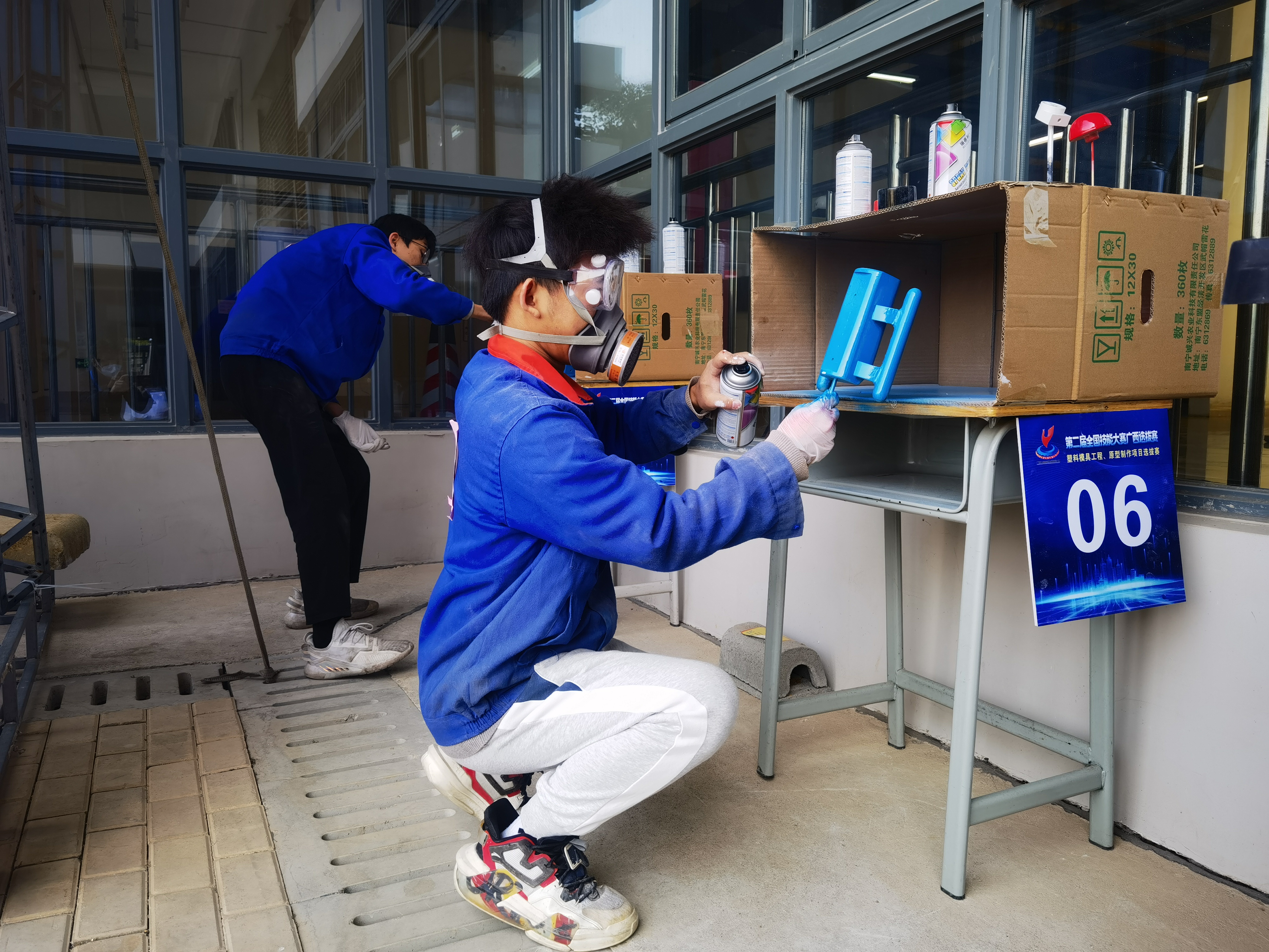 原型制作赛项选手在进行喷漆作业(伍贤洪/摄)