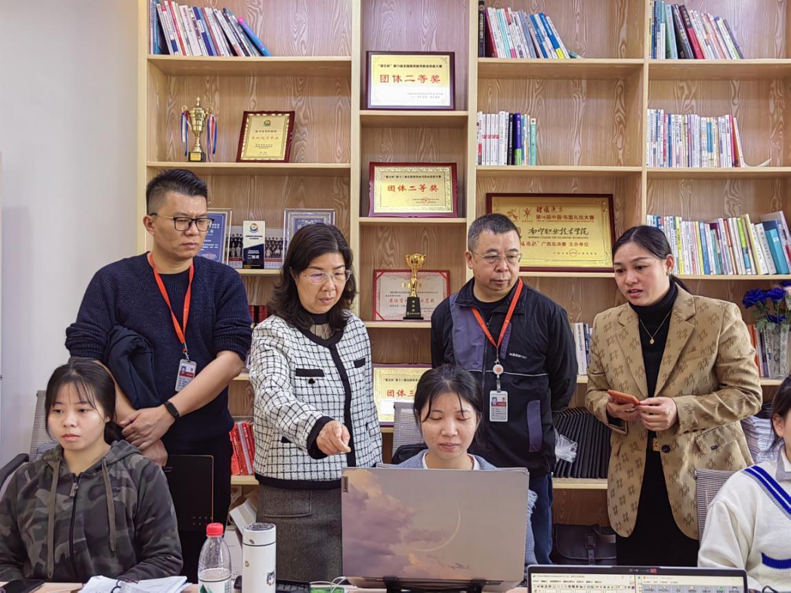 罗桂全一行走访了学院的实训室、多媒体教室,重点检查了教师课堂管理及授课、学生返校上课和出勤、教学楼环境卫生以及消防安全设施和疫情防控工作。罗桂全还看望慰问了正在全力备战2023年广西职业院校技能大赛的师生,现场观摩选手们的操作演练,详细了解各参赛队备赛进程、训练进展等情况,对师生团队的辛苦备战和辛勤付出表示肯定,鼓励参赛师生以积极的心态全力备赛,精益求精,再创佳绩。