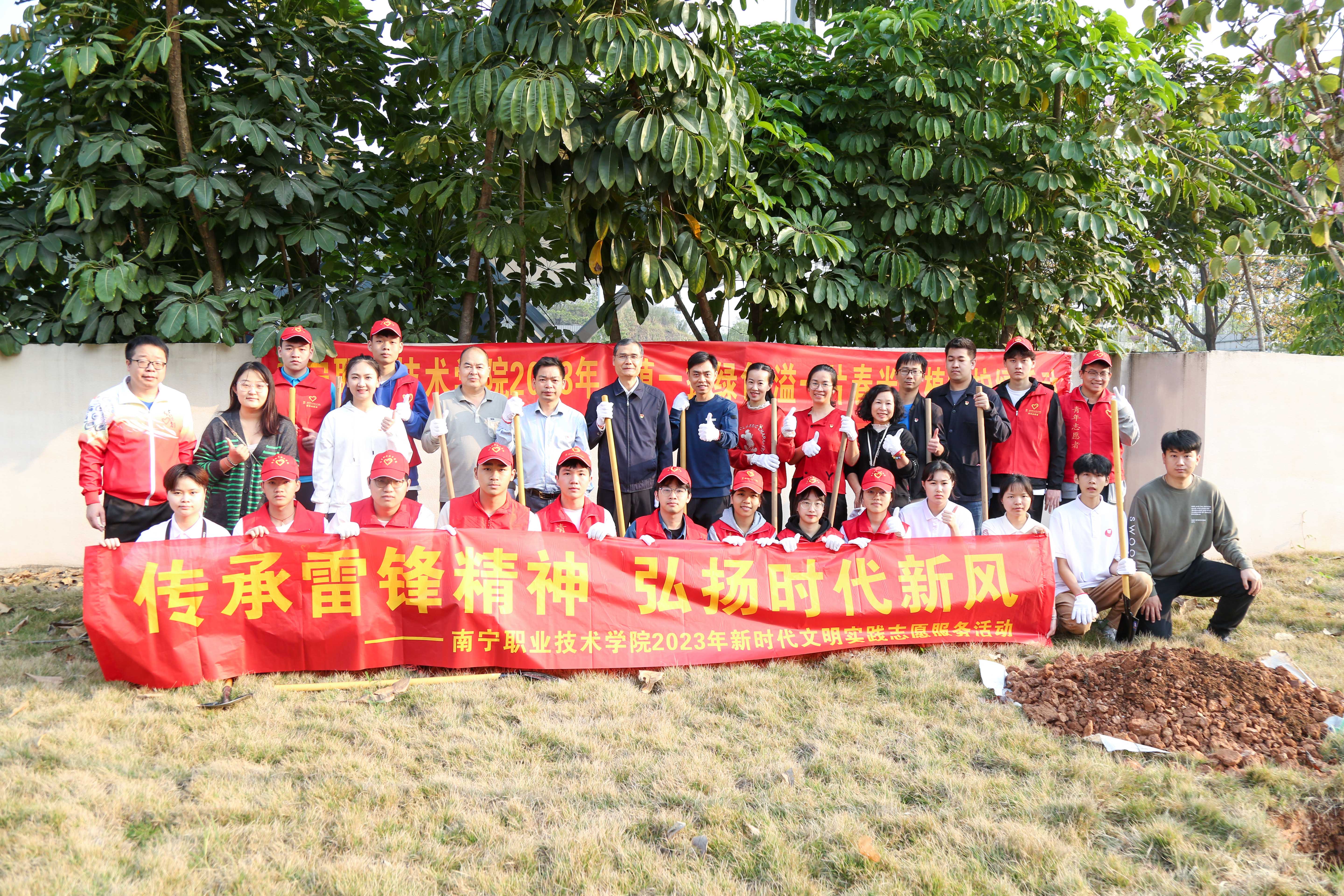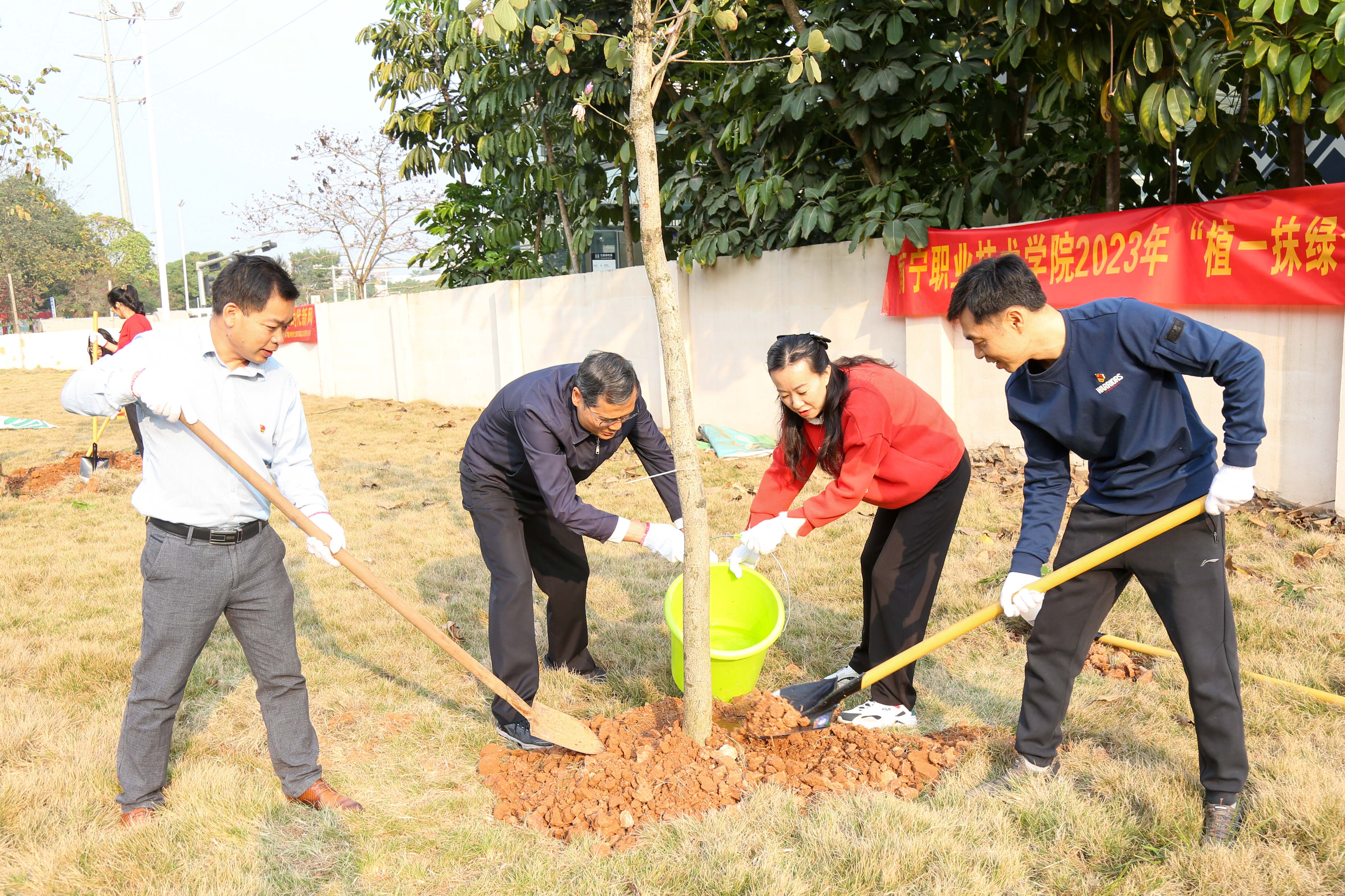 植树现场,全体师生热情高涨,挖坑、扶苗、填土、浇水,道道工序认真仔细。经过大家的努力,10棵宫粉紫荆树苗在校园傲然挺立,为“广西绿色校园”的南职增添了一抹春色。