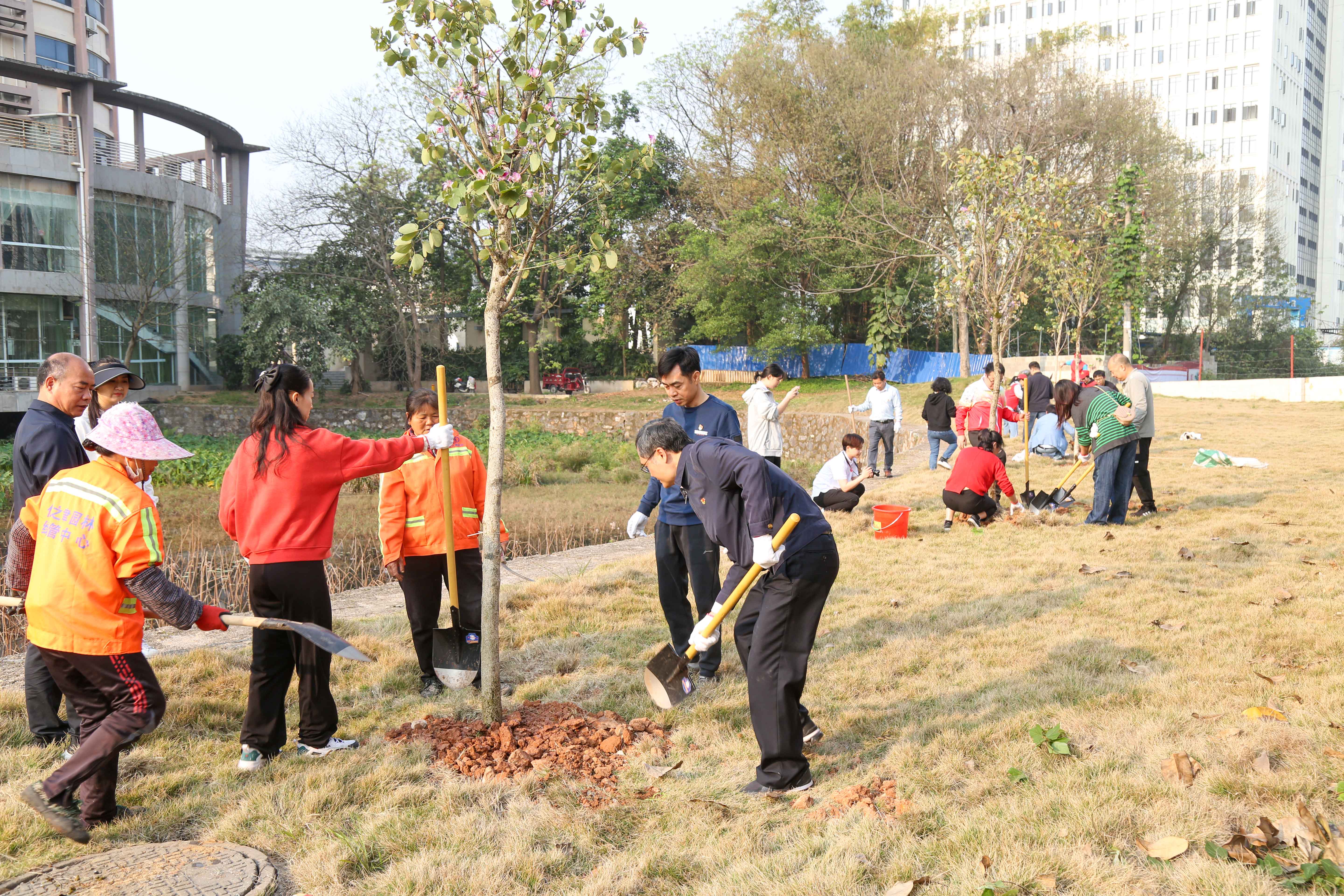 春满大地万物苏,植树添绿正当时。为深入学习贯彻党的二十大精神,贯彻落实习近平总书记关于志愿服务重要指示批示精神,增强广大青年学生爱校护校荣校意识,树立“植绿、护绿、爱绿”的文明风尚,3月10日上午,学校副校长万玉文和师生代表在必赢官网罗文校区2号门荷花湖边开展“植一抹绿色 溢一片春光”植树护绿活动。