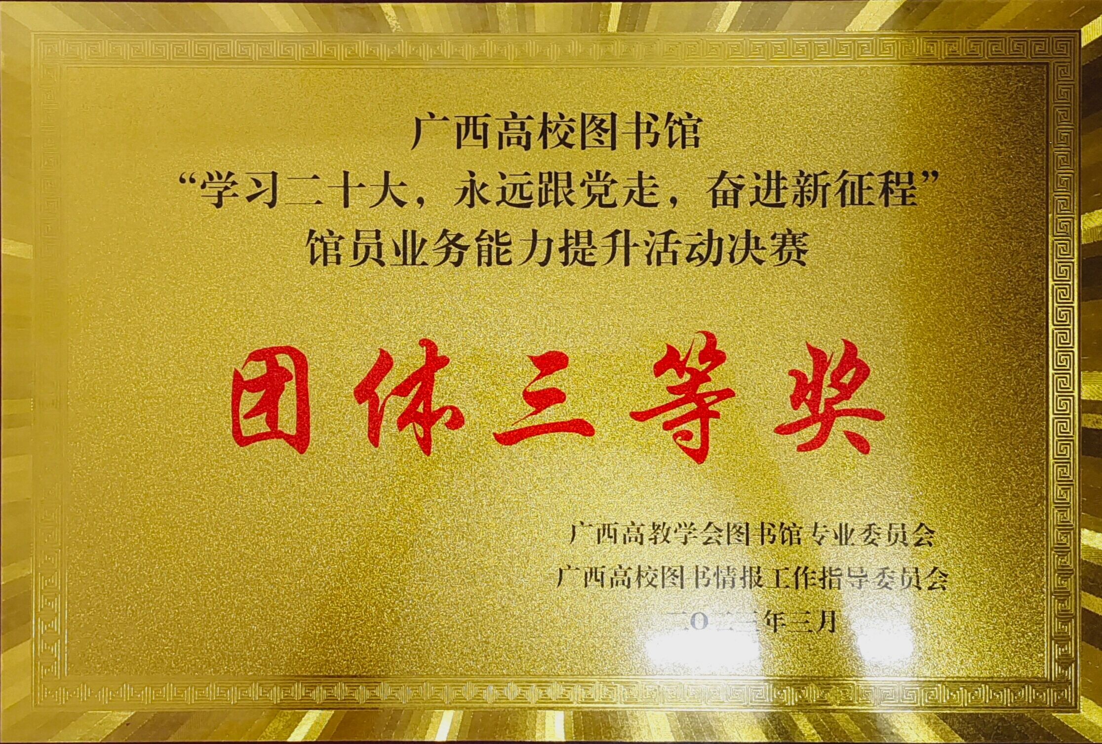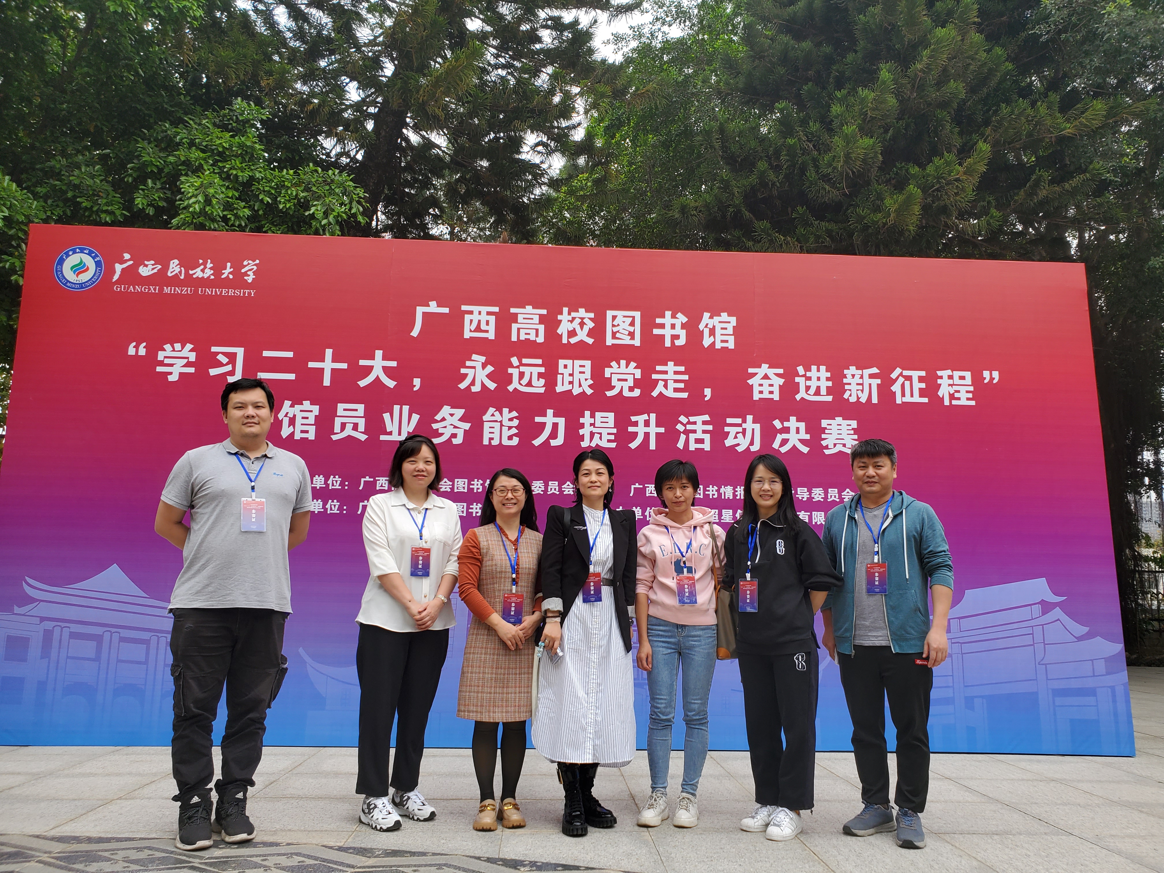 3月17日,由广西高教学会图书馆专业委员会、广西高校图书情报工作指导委员会主办的首届“学习二十大,永远跟党走,奋进新征程”广西高校图书馆馆员业务能力提升活动大赛决赛在广西民族大学举行。教育发展与信息服务中心选派7名图书馆业务骨干代表学校参赛,最终获得馆员知识竞赛和团体两项集体三等奖。
