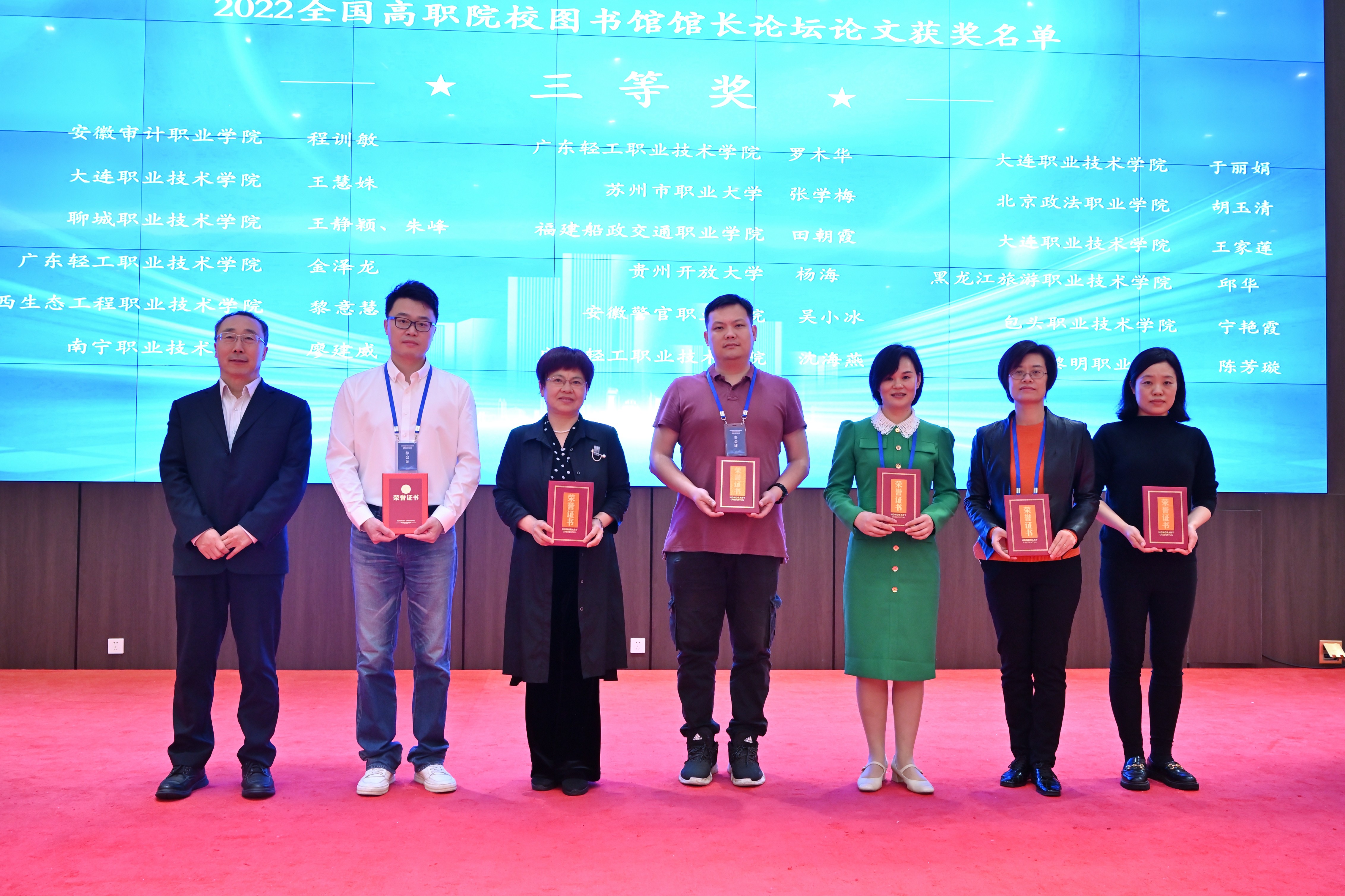 本次会议明确了高职院校图书馆下一步高质量发展思路,加强了全国高职院校图书馆之间的交流与合作,对高职院校图书馆高质量发展与数字化转型产生具有积极推进作用,是一场全国高职院校图书馆数字化转型升级和创新发展的年度盛会,也是一次图书馆服务理念革新与高质量发展的年度峰会。大会最后,举行了2022全国高职院校图书馆馆长论坛获奖案例、征文获奖作品表彰仪式,必赢官网廖建威老师荣获征文三等奖。